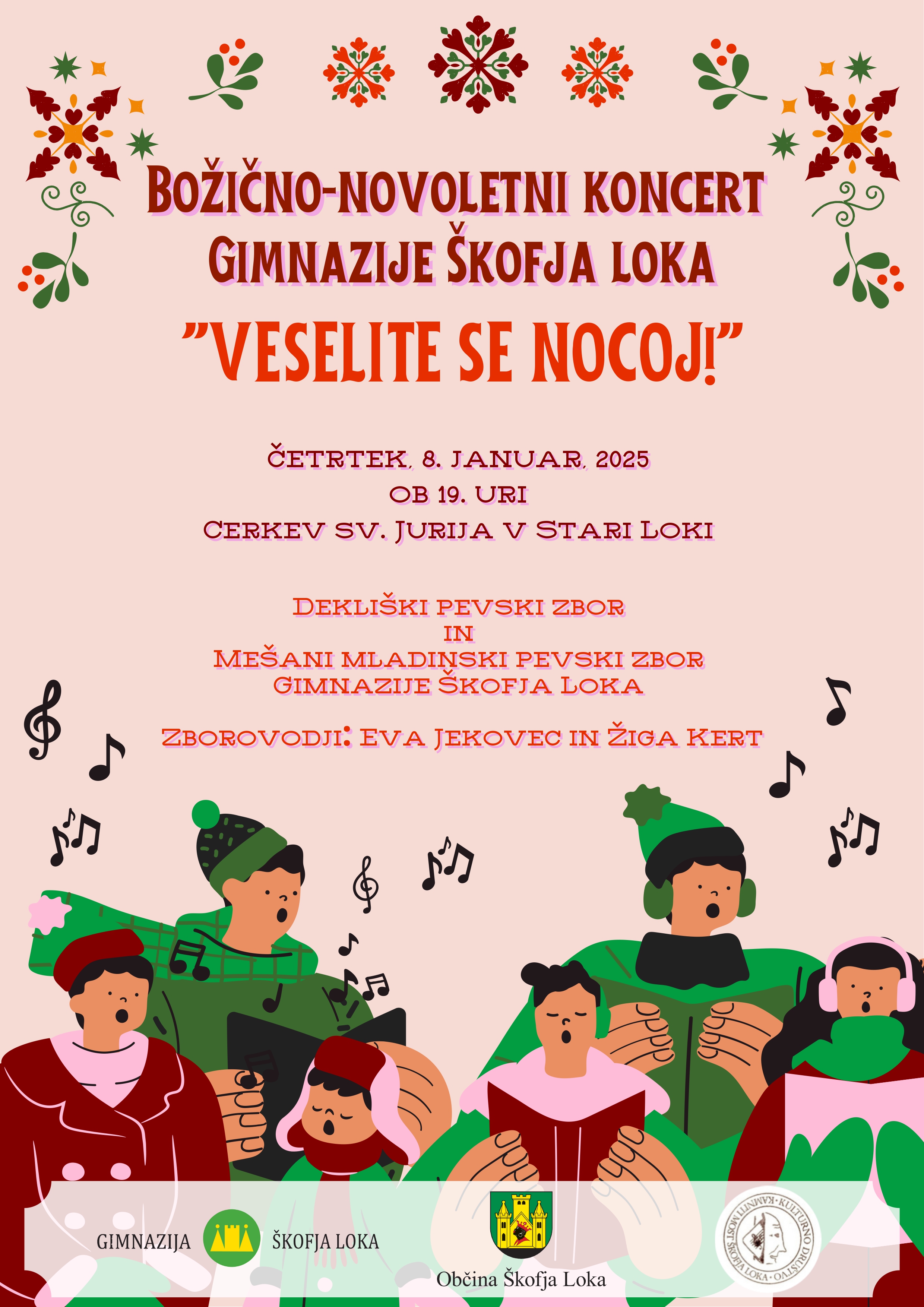 Gimnazija Škofja Loka vabi na božično-novoletni koncert, na katerem se bosta predstavila Dekliški pevski zbor in Mešani mladinski pevski zbor Gimnazije Škofja Loka.
