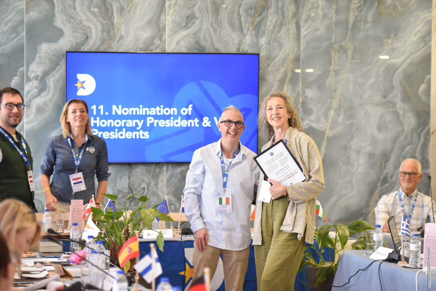 Od 16. do 19. oktobra 2025 je v grškem obmorskem mestu Preveza potekala 49. konferenca evropskih mest v mreži Douzelage, ki povezuje partnerska mesta držav članic Evropske unije. Slovenijo v tem združenju že tradicionalno predstavlja Škofja Loka. Letošnja osrednja tema konference je bila Sustainability and Tourism (Trajnostnost in turizem), ki je povezovala predstavnike občin, učitelje in mlade udeležence iz več kot 25 evropskih mest. V posameznih odborih so potekala predavanja, okrogle mize in predstavitve, povezane s tematiko konference: v skupini General Meeting sta sodelovala predstavnika lokalne skupnosti, Miha Ješe in Sergej Novak, v skupini Education Meeting profesor Matic Gortnar, v skupini Youth Meeting pa dijakinji četrtega letnika, Tisa Habjan (4. d) in Ema Lenc (4. e). Prvi dan konference, v petek, 17. 10., smo razpravljali o povezovanju mest in narave ter varovanju naravnih habitatov v odnosu do turizma. Udeleženci so poudarili pomen iskanja ravnotežja med turističnim razvojem in ohranjanjem okolja. Na delavnici Sustainability and Douzelage so predstavniki partnerskih mest razmišljali, kako lahko Douzelage kot evropska mreža prispeva k bolj trajnostnemu delovanju – od načina potovanj in organizacije dogodkov do zmanjšanja okoljskega odtisa. V soboto, 18. oktobra, smo sodelovali na delavnici The Future of Douzelage, namenjeni razpravi o prihodnosti združenja. Pogovarjali smo se o ključnih vprašanjih: kje smo trenutno, kam želimo v prihodnje, kako vključiti več mladih in lokalnih prebivalcev ter kako zagotoviti uspešen razvoj mreže v naslednjem desetletju. Udeleženci so izmenjali številne ideje o večji prepoznavnosti Douzelage in pomenu medgeneracijskega sodelovanja. Pomemben del konference je bil tudi družabni in spoznavni program. Udeleženci so se lahko udeležili izleta z ladjo po zalivu Amvrakikos, kjer so opazovali bogato morsko življenje in spoznali pomen zaščitenih morskih območij, ali pa ogleda arheološkega najdišča Nikopolis, starodavnega rimskega mesta v bližini Preveze. Srečanje je ponovno dokazalo, kako dragocena je izmenjava izkušenj, znanja in dobrih praks med evropskimi mesti. Douzelage ostaja pomembna platforma, ki krepi sodelovanje med mladimi, šolami in lokalnimi skupnostmi ter spodbuja vrednote povezovanja, trajnostnega razvoja in evropskega prijateljstva. Naslednja, 50. jubilejna konferenca, bo potekala med 3. in 6. septembrom prihodnje leto na Malti, kjer bo osrednja tema Domestic Violence and Victim Support (Nasilje v družini in podpora žrtvam). Matic Gortnar, prof. |