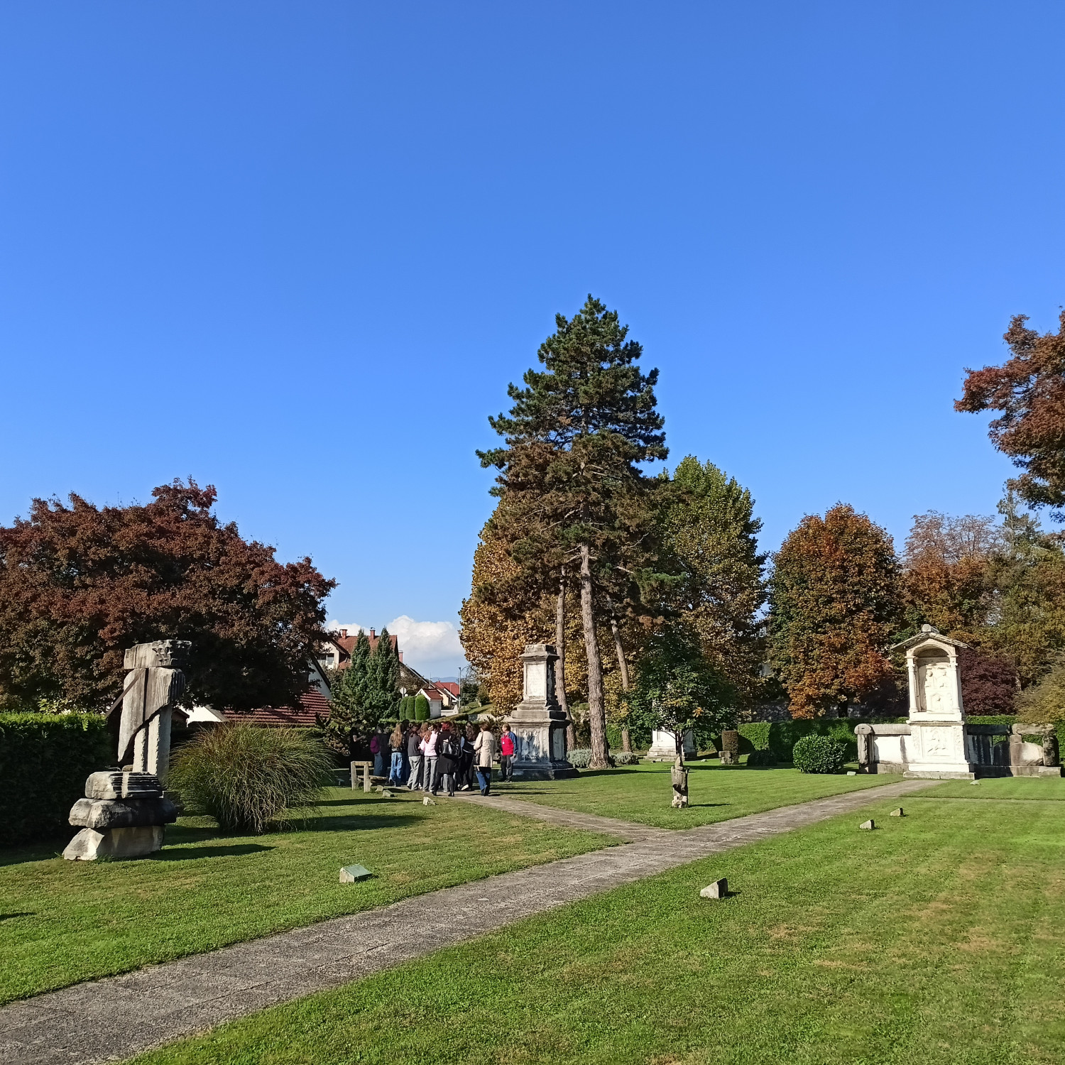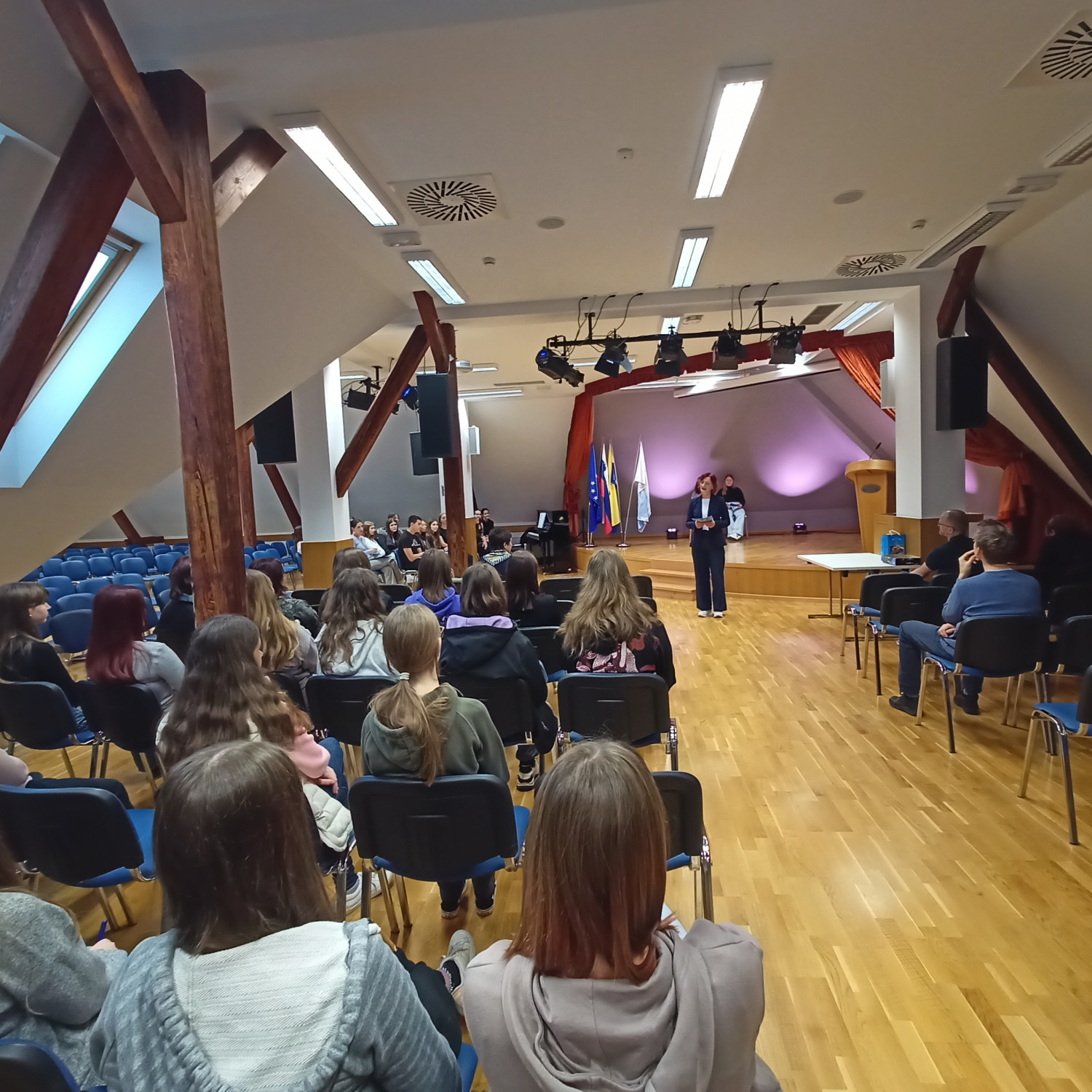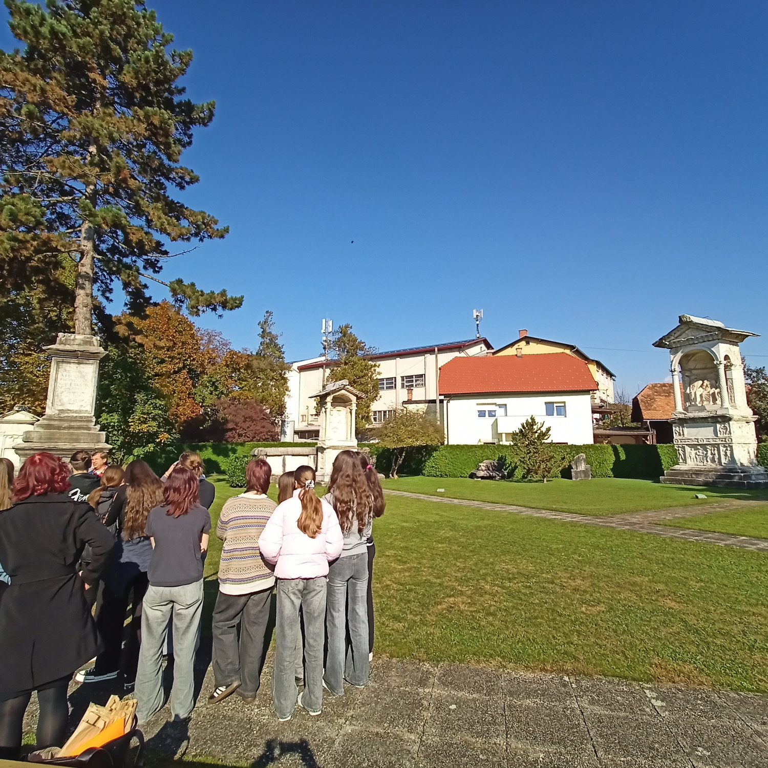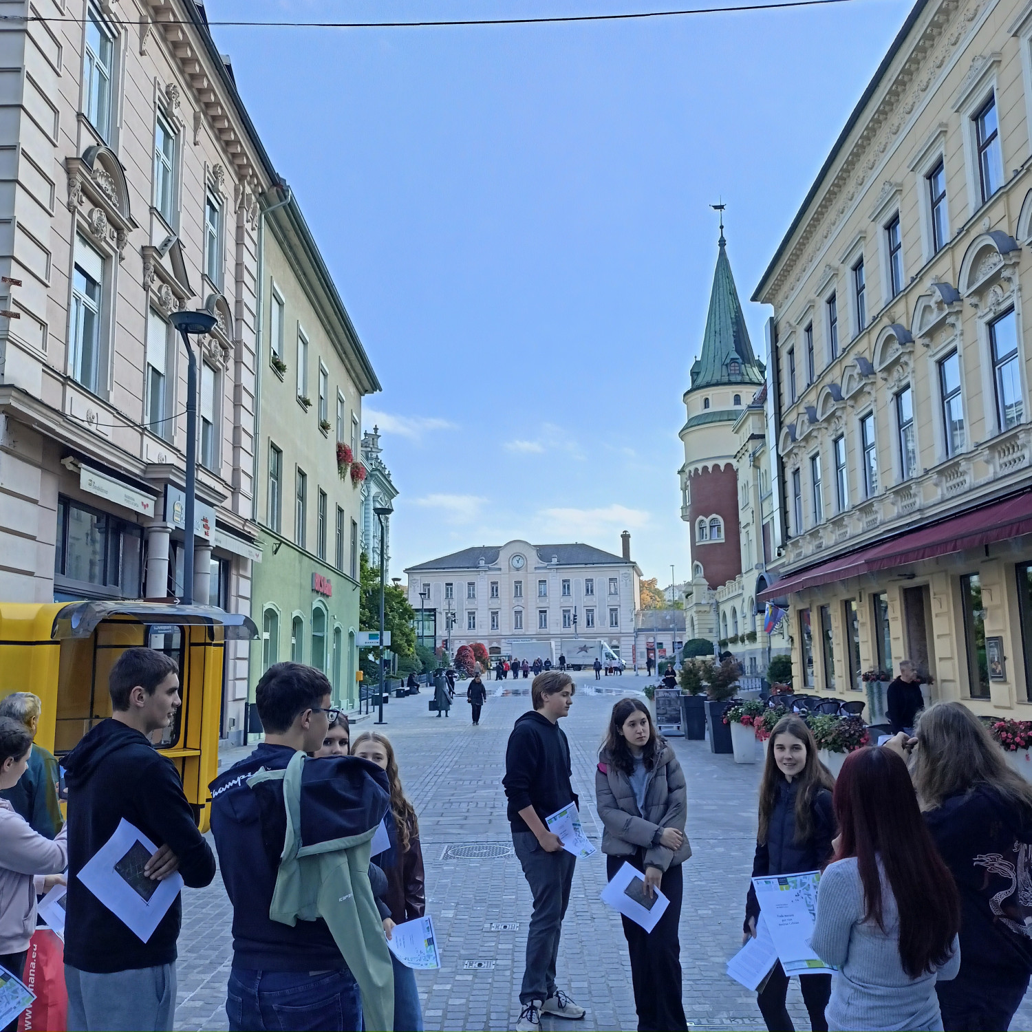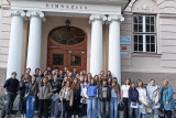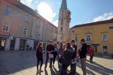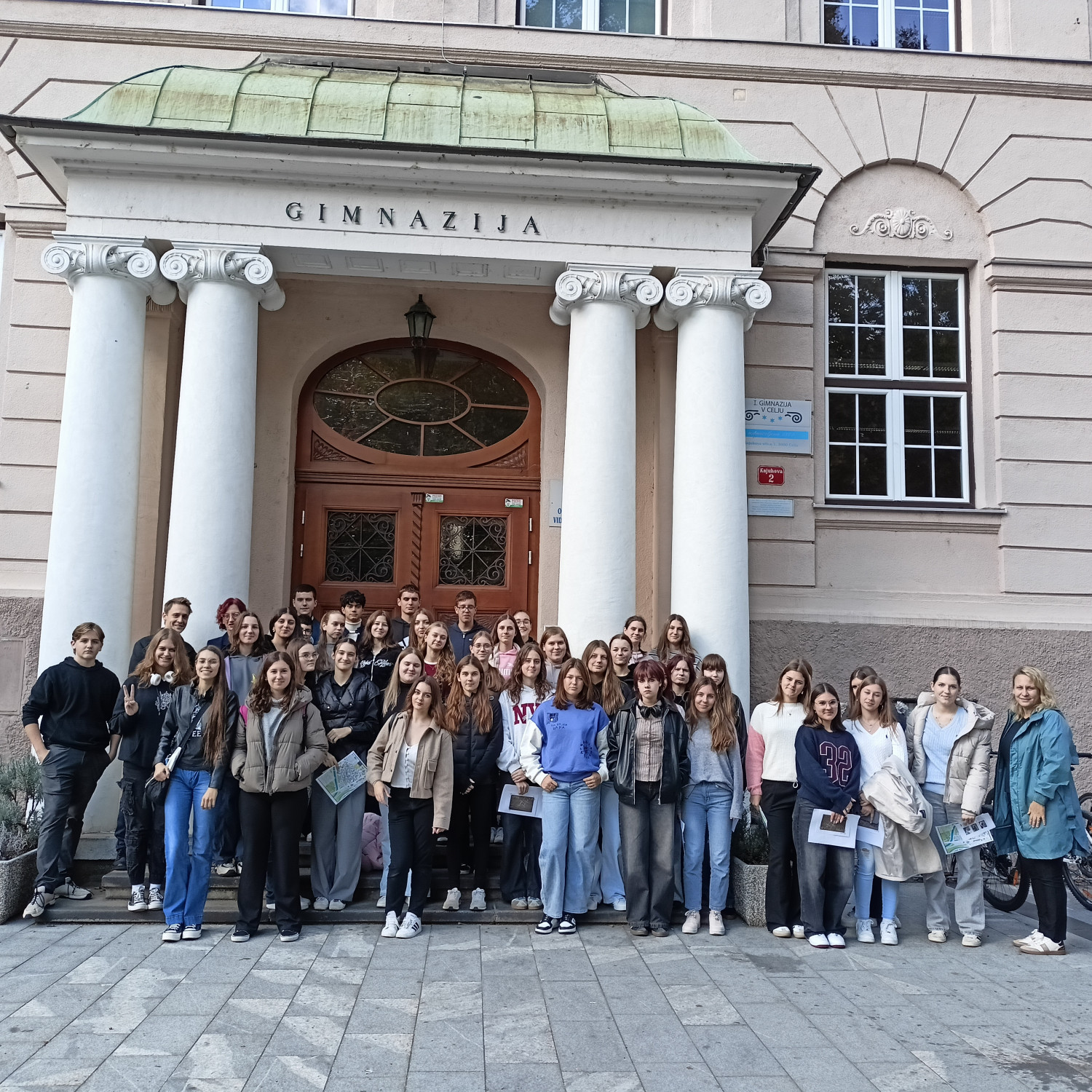 V četrtek, 16. 10., so se dijaki Gimnazije Škofja Loka že tradicionalno udeležili nacionalne izmenjave s I. gimnazijo v Celju, ki poteka med oddelkoma prvih letnikov klasične gimnazije. Njihovi vrstniki Celjani so za naše dijake za dobrodošlico pripravili pester program s kratko prireditvijo, na kateri so se predstavili mladi talenti z različnimi kulturnimi točkami, in slastne kulinarične dobrote, da smo se tako okrepčali pred raziskovanjem mesta, ki nas je gostilo. Spoznali smo Celje, kot ga poznamo danes, in “mesto pod mestom” v obliki razstave, ki prikazuje rimsko Celejo “in situ” (“na samem mestu”). Zanimivo se nam je zdelo, da je zaenkrat raziskanega le približno 10 odstotkov antičnega Celja, pa tudi, od kod rek “vse poti vodijo v Rim”. Po kosilu so dijaki ustvarjali po navdihu antičnih mozaikov, ki so v preteklosti krasili razkošnejše vile. Motive le-teh so vključili v kolaž skupaj s fotografijami, ki so jih naredili v času raziskovanja mesta. Izdelke so razstavili in se nato z gostitelji odpravili domov. Drugi dan izmenjave, 17. 10., so dijaki izvedeli več o gradnji antičnih mest in o stavbah antične Celeje, nato pa so se podali v Šempeter na ogled nekropole. Ob povratku v Celje so se sprehodili na Miklavški hrib in si ogledali ostanke Heraklejevega svetišča. “Se vidimo” pa velja do marca 2026, ko se že veselimo obiska Celjanov v naši gimnaziji. |