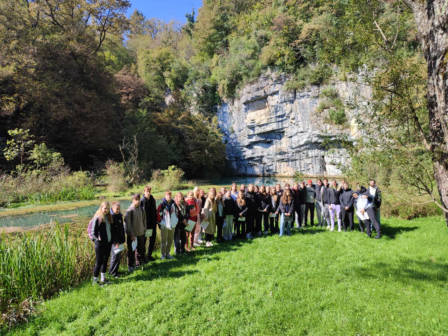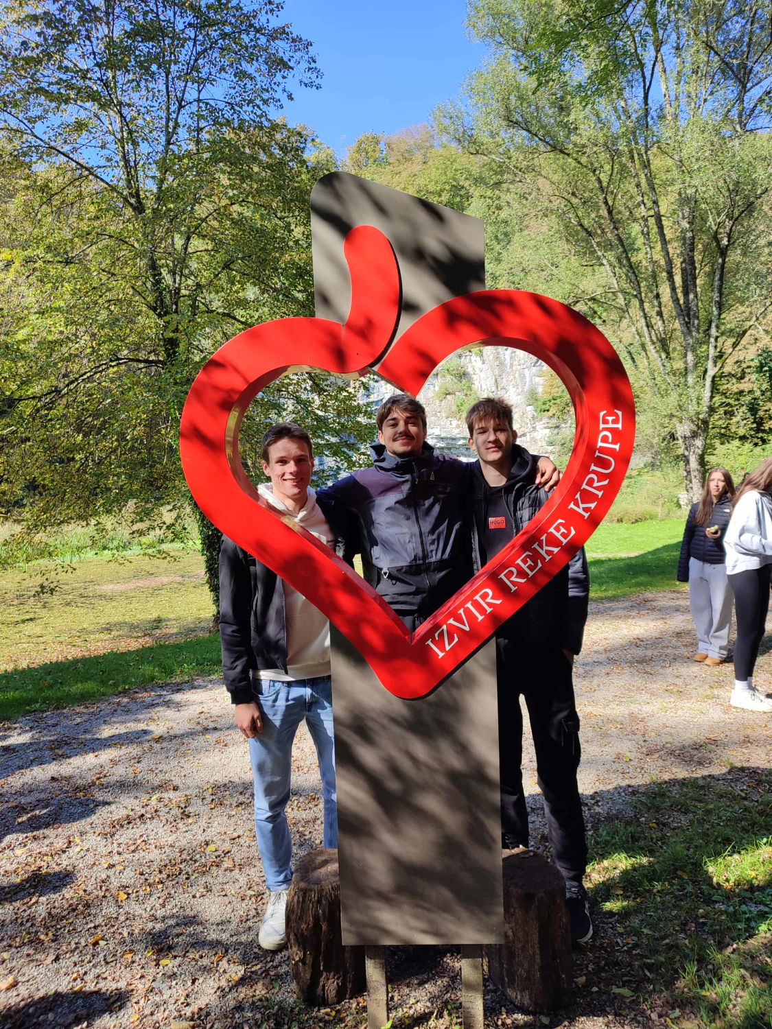 V petek, 3. 10., in v soboto, 4. 10. 2025, so se dijaki 4. letnika v sklopu maturantske geografske ekskurzije odpravili raziskovat kraški svet z namenom poglabljanja znanja, spoznavanja slovenske pokrajine na terenu ter praktične izdelave dveh fizično- in dveh družbenogeografskih terenskih vaj. V petek smo se odpeljali v Belo krajino, kjer smo ugotavljali turistični potencial Semiča. Po skupinah smo izdelali enominutni promocijski posnetek in turistični letak. Ogledali smo si tudi izvir reke Krupe, ki je znan po veliki onesnaženosti zaradi odlaganja odpadnih kondenzatorjev. S pripomočki iz laborantskega kovčka smo preverili, ali je voda zares onesnažena in s čim. Med vožnjo smo se lahko mnogokrat prepričali, da se res nahajamo na kraškem površju, saj smo videli ogromno vrtač in uval. V soboto pa smo preizkusili »notranjski mraz«, saj smo si najprej ogledali kraške požiralnike na Ponikvah in preverili svoje orientacijske zmožnosti, nato pa smo si ogledali še Bloško jezero in, prav tako s pomočjo izdelave promocijskega posnetka in turističnega letaka, pripravili inovativne izdelke za turistično promocijo območja. Nekaj primerov si lahko ogledate v galeriji. Ekskurziji sta bili zanimivi in sproščeni in prav zato smo se na poti tudi ogromno novega naučili. |