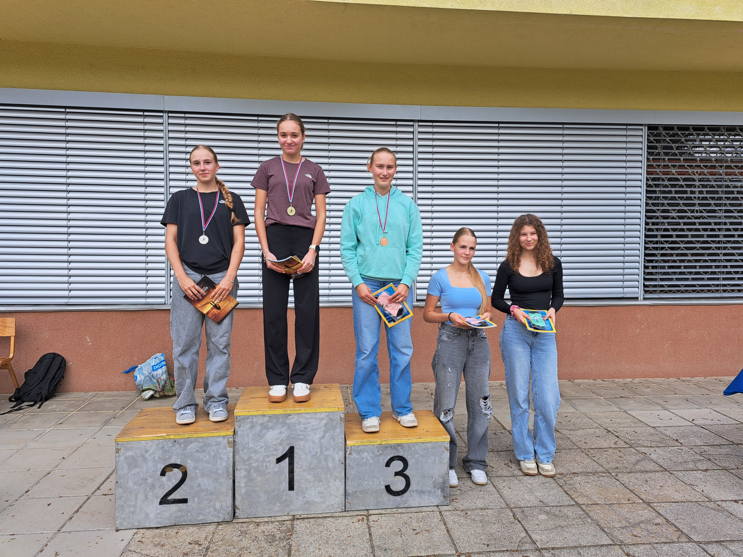 Pet naših dijakinj je danes zastopalo šolo na medobčinskem prvenstvu v krosu. Proga je bila dolga 1200m in je potekala vzdolž Sore, s štartom in ciljem za OŠ Ivana Groharja. Dekleta so dobro odtekla, vsaka po svojih najboljših sposobnostih. Zmagala je Anja Kejžar, 4. š, drugo mesto je zasedla Eli Mrak, 3. š, bronasta medalja je pripadla Maruši Šubic, 1. a. Četrto in peto mesto sta zasedli Ula Možina in Iva Klara Oman, obe dijakinji 1.a.