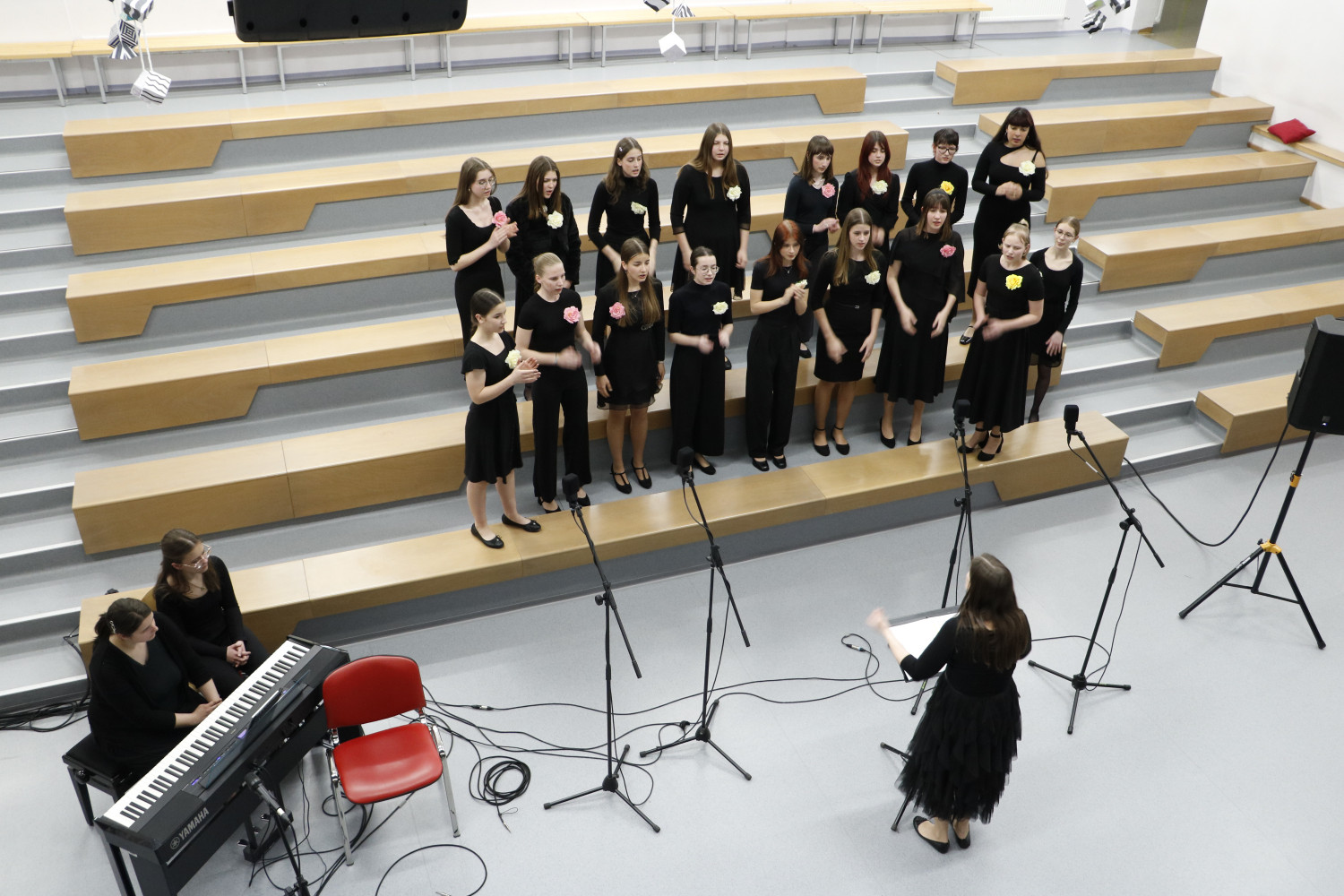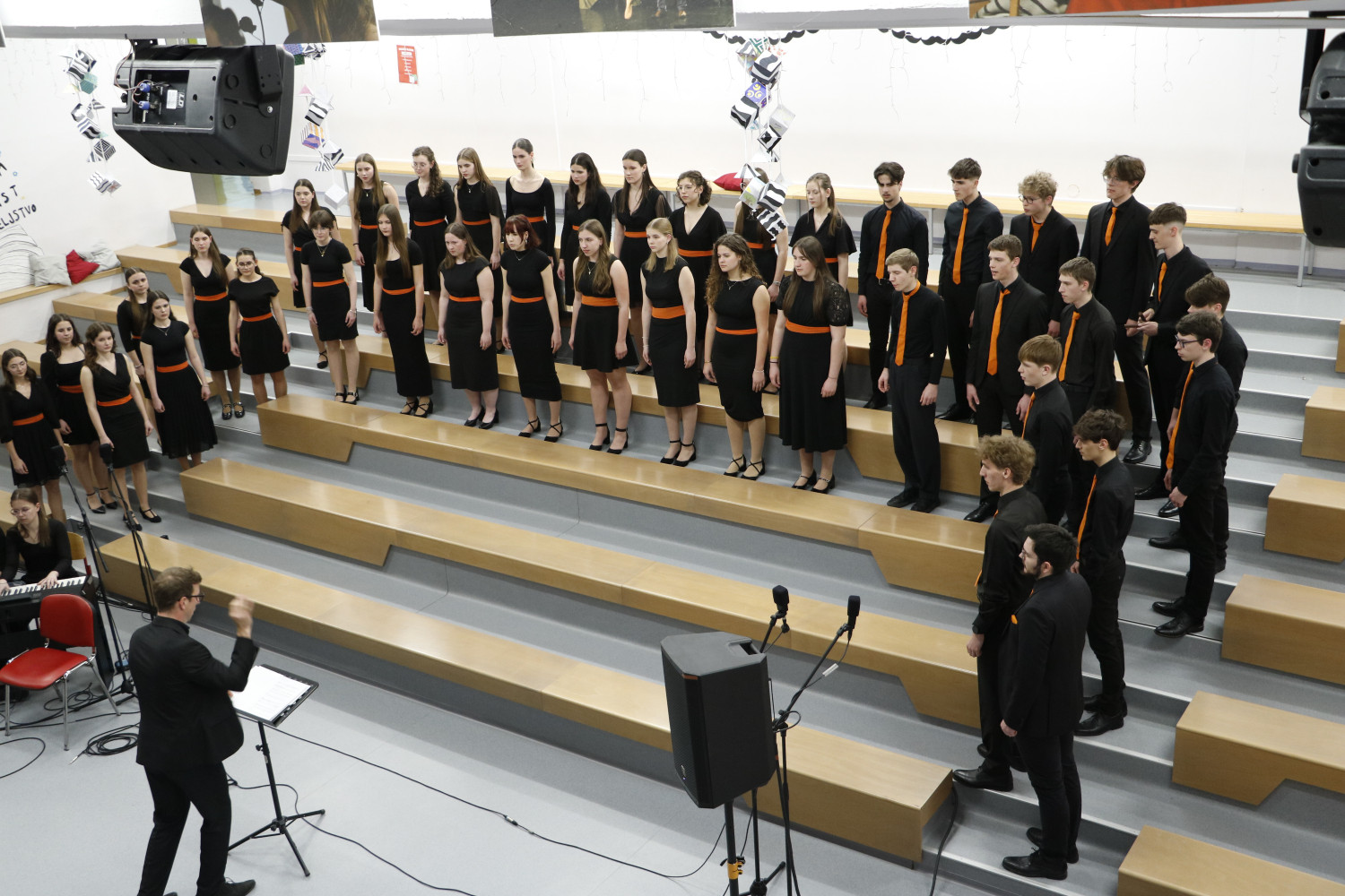 Na Gorenjskem je znova zazvenela pesem mladih – 12. marca je v prostorih GSRŠM Kamnik potekalo srečanje gorenjskih srednješolskih pevskih zborov. Dogodek je združil prav vse srednješolske zbore iz regije, ki so s svojo raznolikostjo in kakovostjo navdušili tako poslušalce kot tudi strokovno javnost. Vsak zbor se je predstavil s skrbno izbranim programom, ki je odražal njihovo umetniško usmeritev, pevsko zrelost in predanost skupnemu muziciranju. Razveseljivo je bilo opaziti, kako se nivo zborovskega petja med mladimi iz leta v leto dviguje, kar potrjuje kakovostno delo zborovodij in vztrajnost pevcev. Gimnazijo Škofja Loka sta na srečanju zastopala oba šolska zbora – Dekliški pevski zbor in Mešani mladinski pevski zbor. Oba sta se predstavila z dovršenimi nastopi in s tem ponovno dokazala, da sodita med pomembne nosilce zborovske kulture v regiji. Takšna srečanja niso le priložnost za predstavitev dosežkov, temveč tudi za medsebojno povezovanje, izmenjavo izkušenj in spodbudo za nadaljnje delo. Mladi pevci so s svojo energijo in predanostjo pokazali, da zborovsko petje ostaja živ in pomemben del šolskega ter kulturnega prostora. Dogodek v Kamniku je tako še enkrat potrdil, da se za prihodnost zborovskega petja ni bati. |