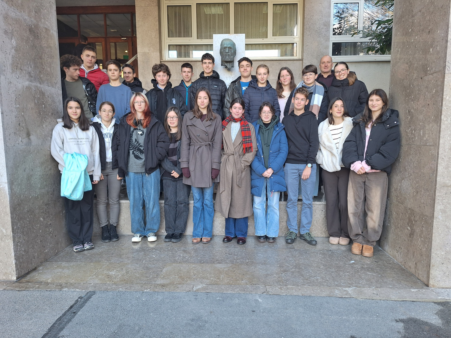 V četrtek, 27. 11. 2025, je bil za dijake 2. a organiziran ogled Inštituta Jožefa Stefana, ki je nadomestil zadnjih nekaj ur pouka tistega dne. Dan pred odhodom smo se razvrstili v dve skupini, in sicer kar po spolu. Vsaka skupina dijakov si je ogledala tri odseke inštituta. Dekleta so si najprej ogledala odsek, imenovan F3, kar je kratica za 3. oddelek fizike. Tu so nam predstavili tanke plasti in premaze, s katerimi so obdelani krhkejši materiali, da se ne obrabijo. Naša druga postaja je bila K5, torej kemija 5, kjer smo izvedele nekaj več o elektronski keramiki. Nazadnje so nam opisali delovanje različnih vrst mikroskopov oziroma fiziko trdne snovi (F5, tj. fizika 5). Fantje so na prvi delavnici podrobneje spoznali inteligentne sisteme na oddelku za elektroniko številka 9, na drugi pa so ji uslužbenci inštituta predstavili sintezo materialov, kar je povezano s kemijo. Njihova zadnja postaja je bil oddelek E2 (elektronika), v okviru katerega so izvedeli nekaj več o sistemih in vodenju. Po delavnicah smo se zbrali v preddverju zgradbe, s čimer je bil naš obisk zaključen. Maša Kavčič Rozman, 2. a |