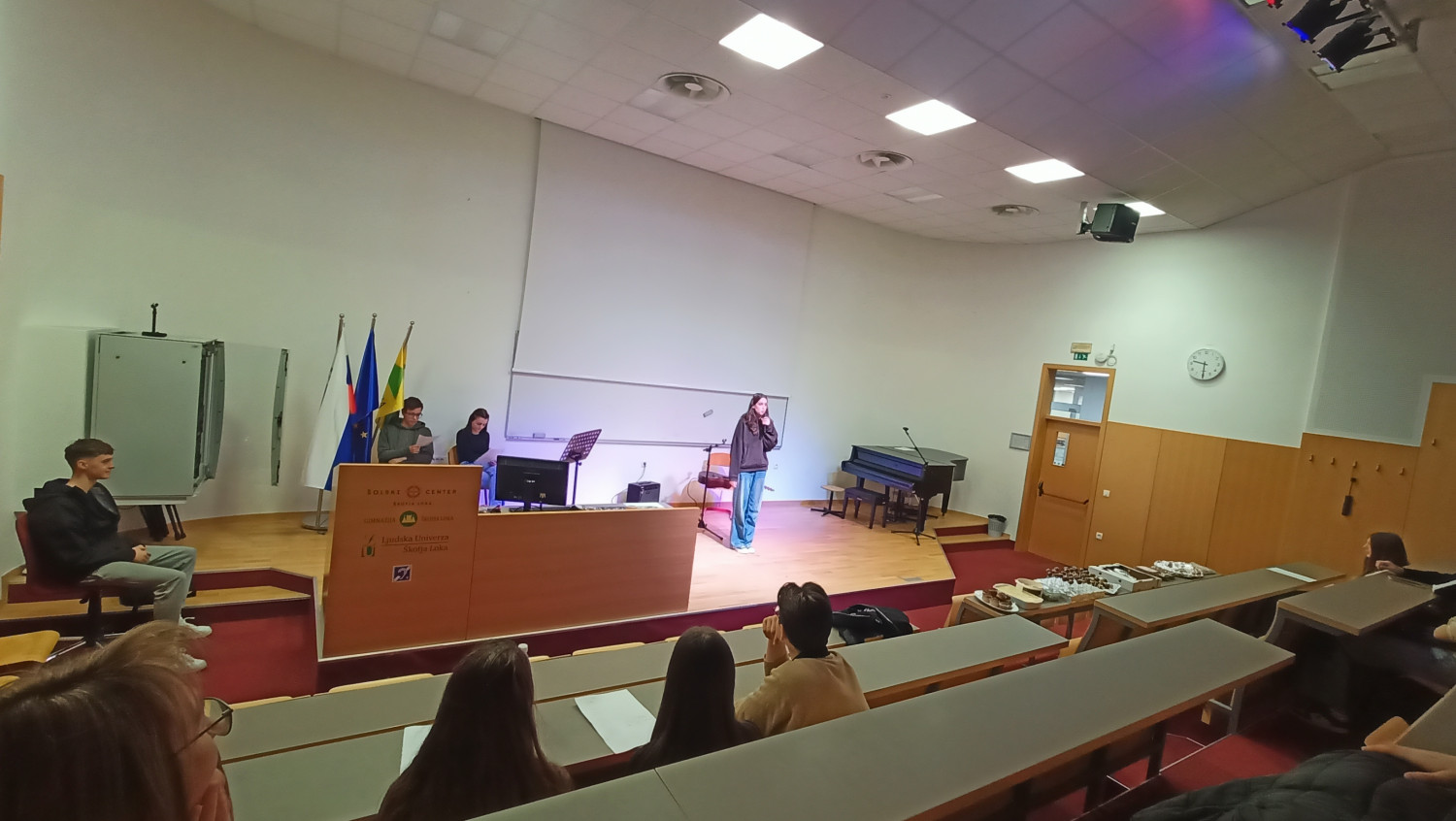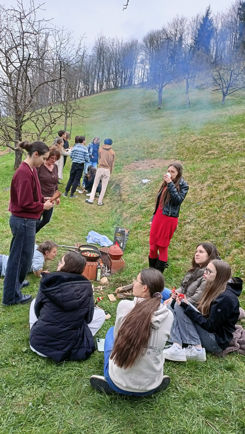 Dijaki 1. bc in klasičnega oddelka I. gimnazije v Celju so 20. in 21. marca preživeli dva vsebinsko bogata in prijetno razgibana dneva v Škofji Loki. Po petkovem zboru v šoli je sledil uvodni program, ki ga je pripravila skupina 1. bc, ter prijeten sprejem gostov – z energijo, ki je napovedovala, da dolgčas ne bo na urniku. V nadaljevanju dopoldneva so svetovni dan poezije obeležili z recitalom klasikov, ki so ga pripravili dijaki 3. bc, nato pa so se podali na raziskovanje mesta. Čeprav je šlo za učenje, so (kilo)metri po ulicah Škofje Loke hitro minili (nekateri pravijo, da tudi zaradi lova za točkami). Popoldne je prineslo vpogled v Škofjeloški pasijon, vrhunec dneva pa je bil večerni ogled tega znamenitega uprizoritvenega dogodka. Po kulturno bogatem dnevu so se dijaki iz Celja vrnili domov, ostali pa so si nabrali moči za sobotni program. Ta je vključeval ogled razstave o pasijonu v klekljani čipki ter raznolike delavnice – od ustvarjalnih in kulinaričnih do “sobe pobega” v naravi in celo latinističnih izzivov. Vsak je lahko našel nekaj zase (ali vsaj nekaj, kar ni bilo pretežko ob 9.30 zjutraj). Dogajanje so zaključili s skupnim kosilom, ki so ga ustvarili v okviru kulinarične delavnice, in odhodom domov, bogatejši za nova znanja, izkušnje in stike z vrstniki z drugega konca države. Se vidimo! Maja Brezovar, razredničarka 1. bc |