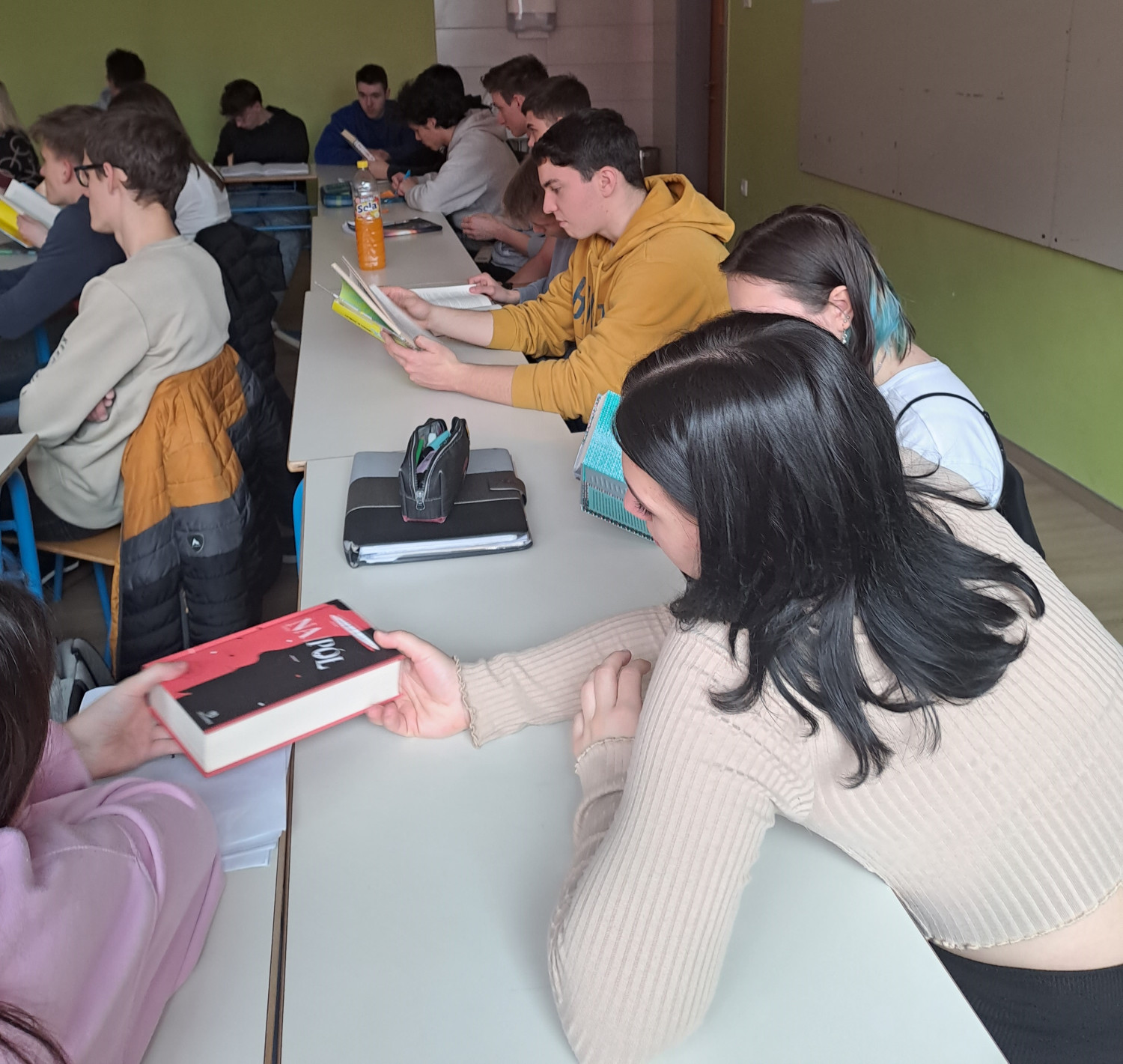 Ob tej priložnosti nas je obiskal naš nekdanji dijak Jasmin B. Frelih, sedaj uveljavljen in večkrat nagrajen pisatelj, esejist in prevajalec. Svoja besedila je bral in se pogovarjal z dijaki pri urah slovenščine v 3. a, b in č. Hvaležni smo mu za lep in spodbuden obisk in za prijetno druženje ob besedi v upanju, da bo praznovanje dneva evropskih avtorjev postalo stalnica.