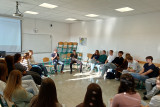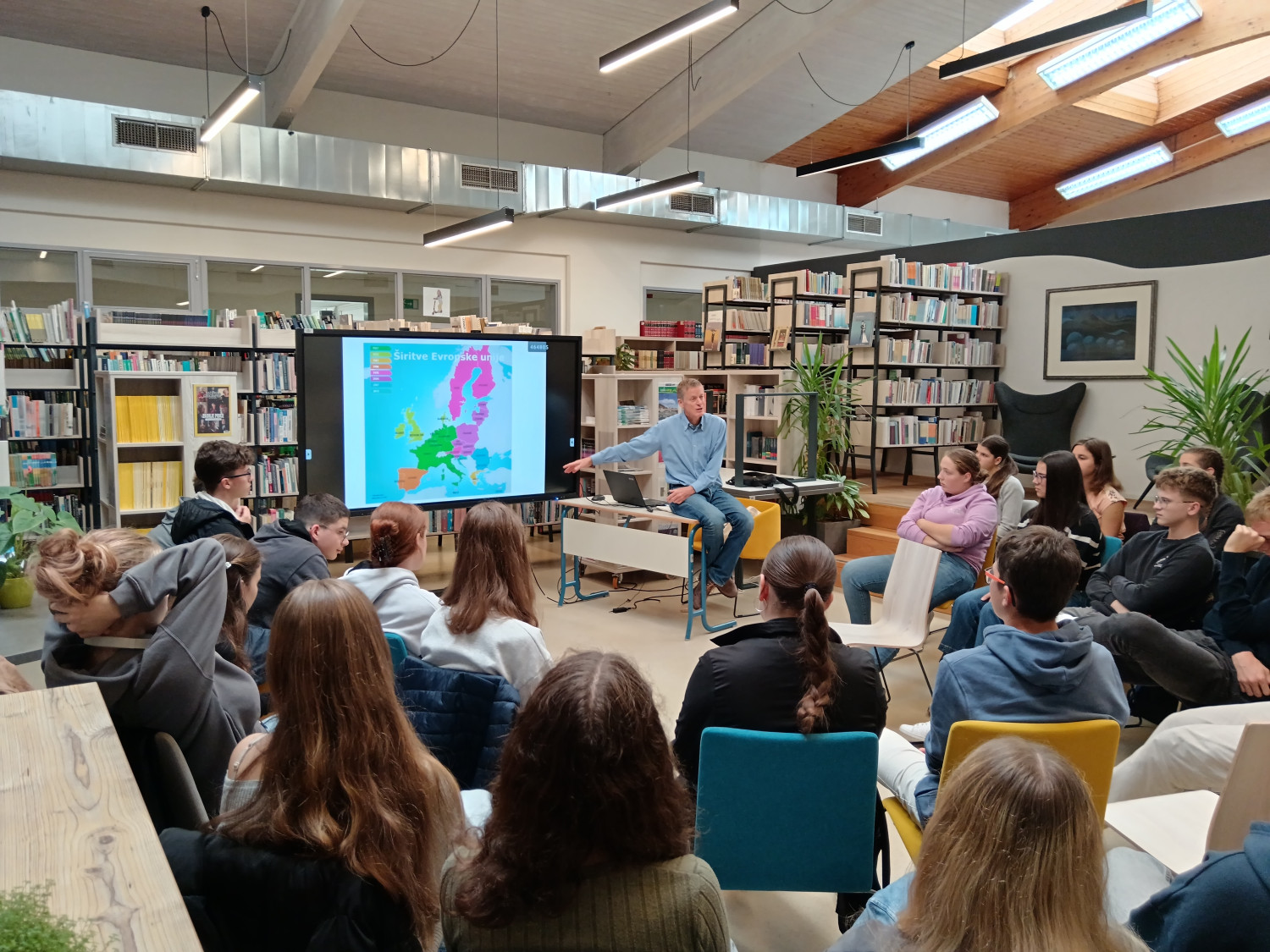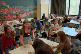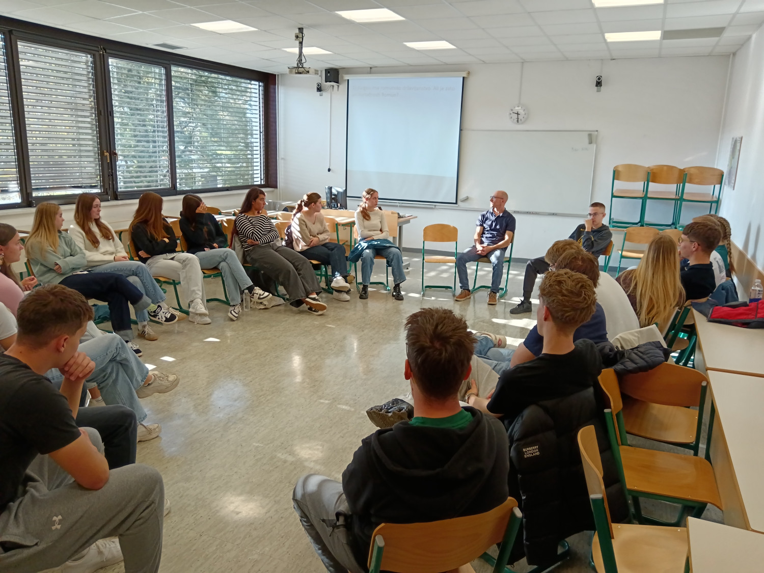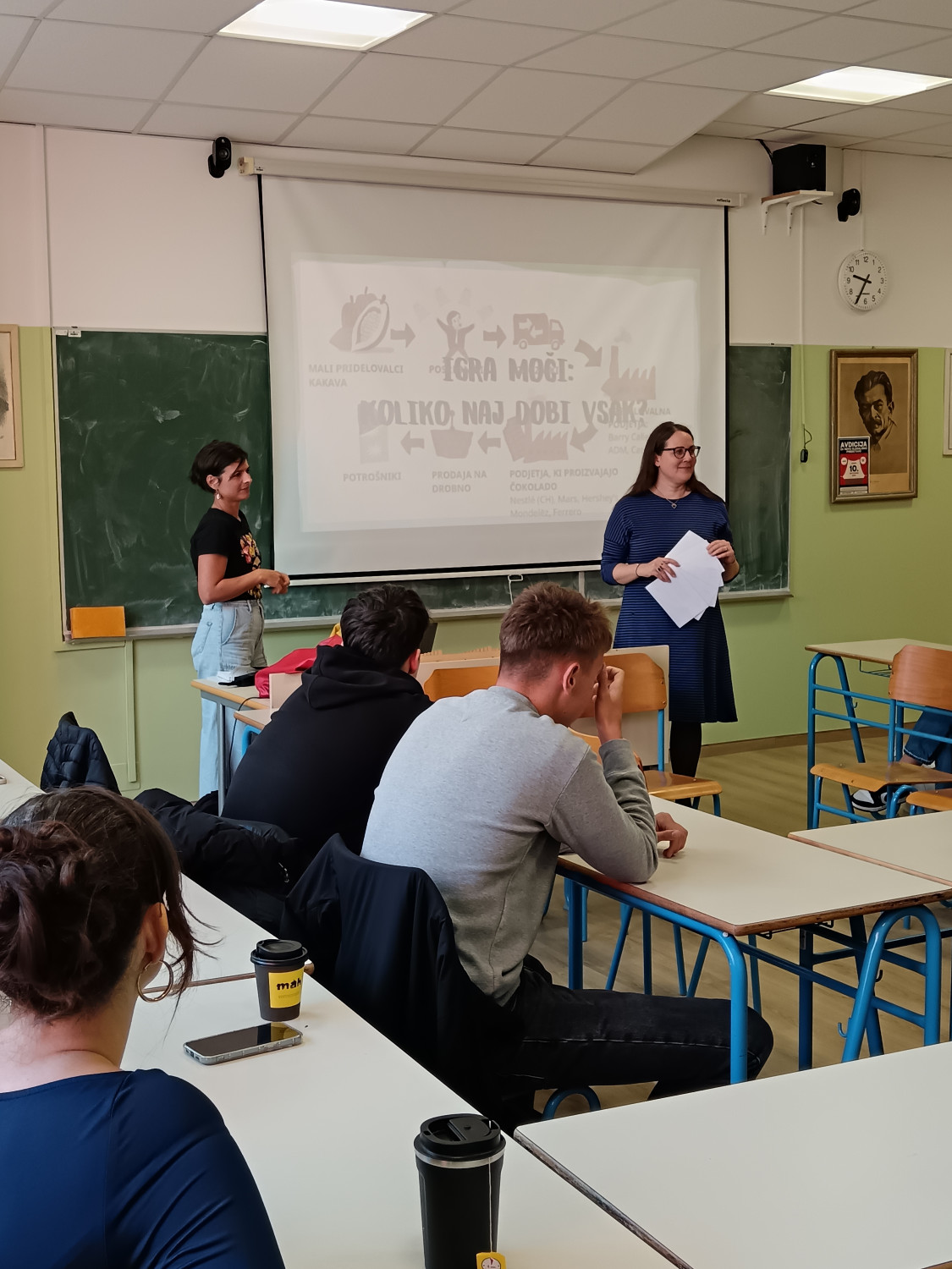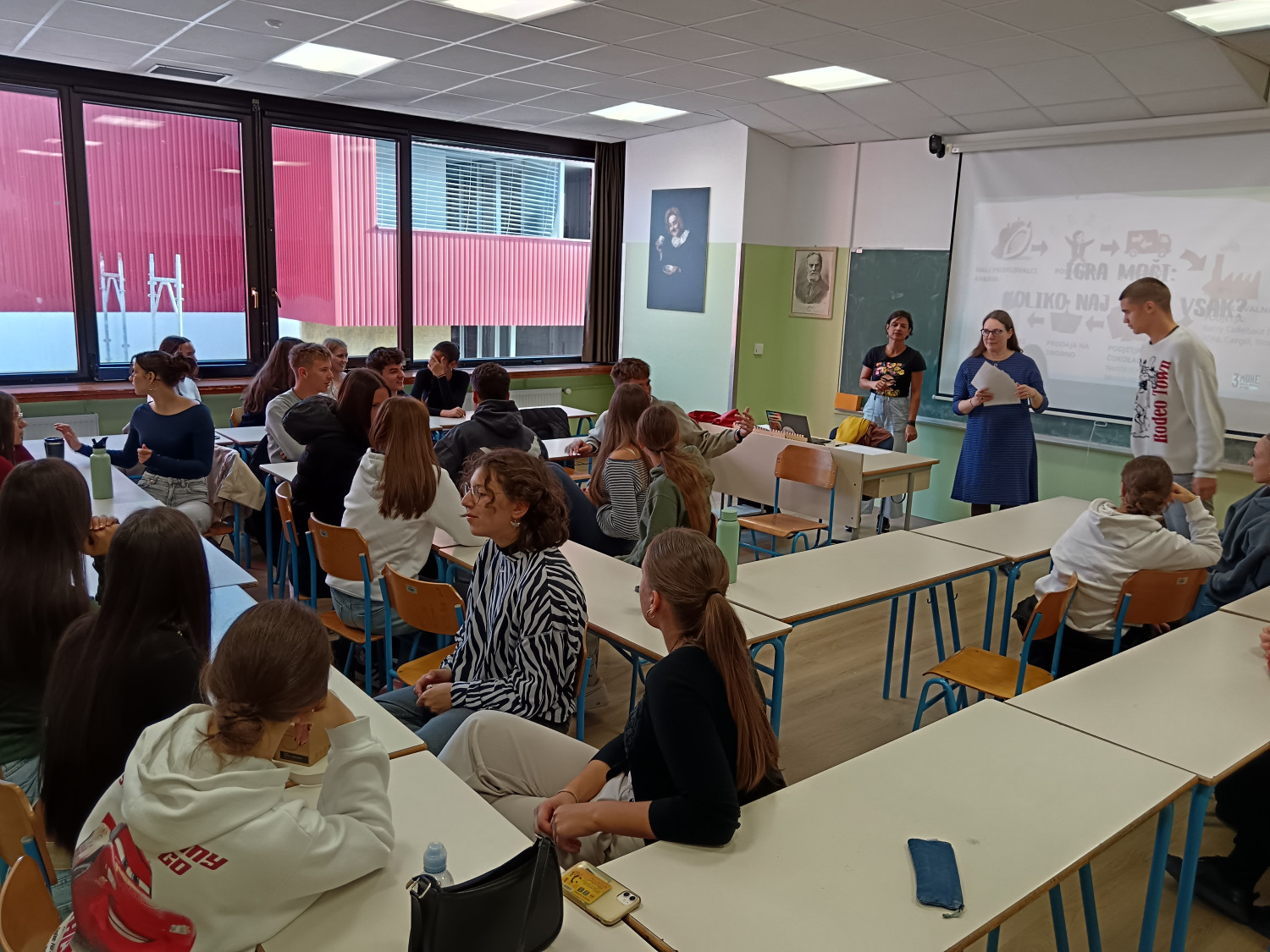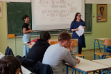 V četrtek in petek, 16. in 17. oktobra, so na šoli potekale delavnice iz sklopa ur aktivnega državljanstva. Dijaki 3. letnika imajo določenih 35 obveznih OIV-ur tematik aktivnega državljanstva, ki jih poskušamo narediti za dijake uporabne in zanimive. V četrtek je na šoli v treh terminih potekalo šest delavnic, med katerimi so si dijaki lahko glede na svoje želje in zanimanja izbrali tri. Društvo Fokus je vodilo delavnico na temo pravične trgovine, povezane s kakavom, Kovačnica Kranj podjetniško delavnico na temo vodenja in načrtovanja podjetniške ideje, Delavska svetovalnica je dijake informirala o delavskih pravicah in kršenju le-teh, gospod Zoran Stančič nas je popeljal v svet Evropske unije preko svojih izkušenj in dela v povezavi z EU, prof. Janez Ciperle je dijakom zastavil filozofsko vprašanje “Kdo je Slovenec?”, prof. Matic Močnik pa je predstavil Ustavo Republike Slovenije. Za eno skupino dijakov je podjetje Optiweb odprlo tudi svoje poslovne prostore, ki so si jih dijaki lahko ogledali in spoznali njihov način dela. V petek so dijaki v Kinu Sora pogledali slovenski dokumentarni film Novi sošolci, ki naslavlja problematiko priseljevanja albanskega prebivalstva v Slovenijo oz. izpostavi zgodbe otrok, ki so se znašli v šolskem okolju, v katerem niso razumeli nobene besede novega jezika. Po projekciji filma se nam je pridružil tudi režiser Toni Cahunek, ki so mu dijaki lahko postavili svoja vprašanja. V nadaljevanju smo v šolski predavalnici gostili še gospoda Domna Saviča, ki nam je predstavil pomen medijske pismenosti, nekaj primerov medijskega vplivanja na potek dogajanja in (dez)informacij, ki so se širile po spletu. Dijaki so zelo zavzeto sodelovali, tako da upamo, da jim ponujene vsebine pridejo še kdaj prav. Če pa ne, pa smo morda sprožili vsaj kakšno refleksijo ali pomislek o (za njih) zelo aktualnih temah. Aktiv aktivnega državljanstva |