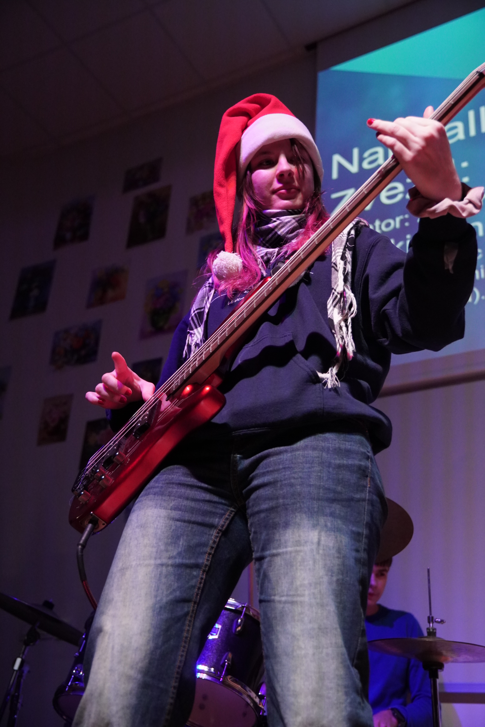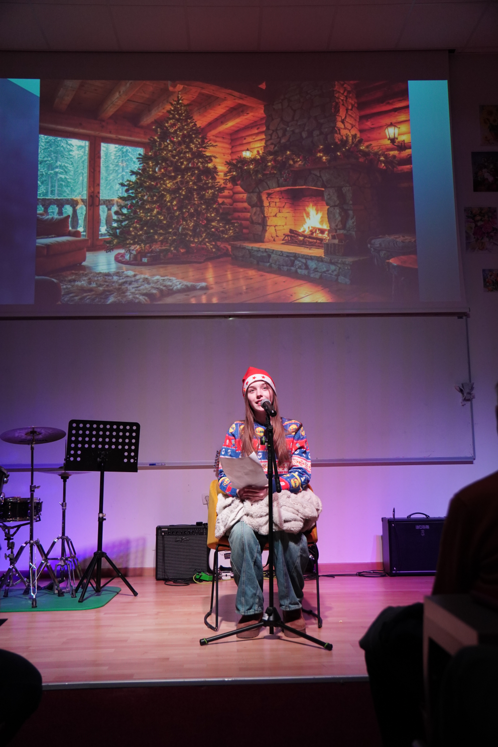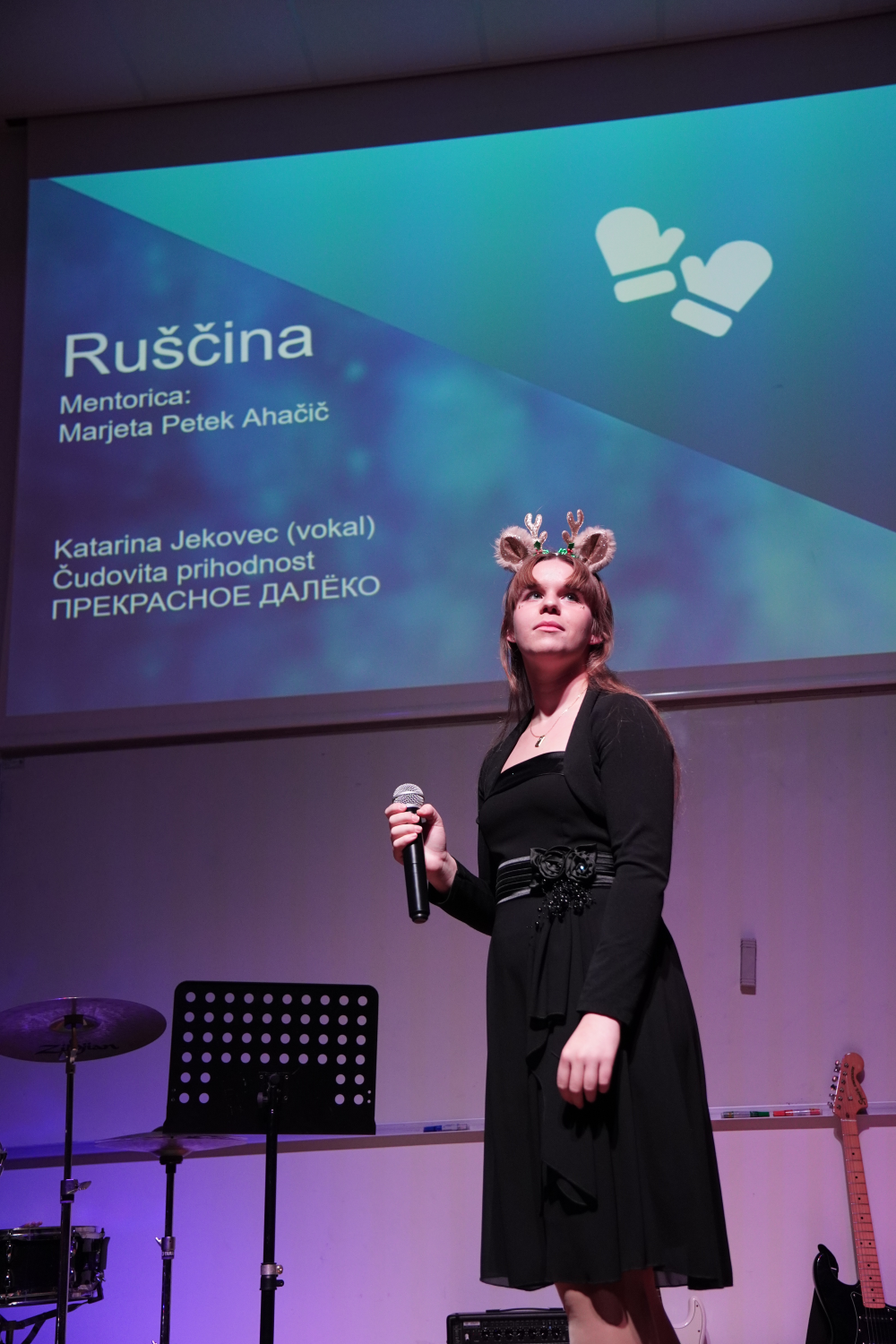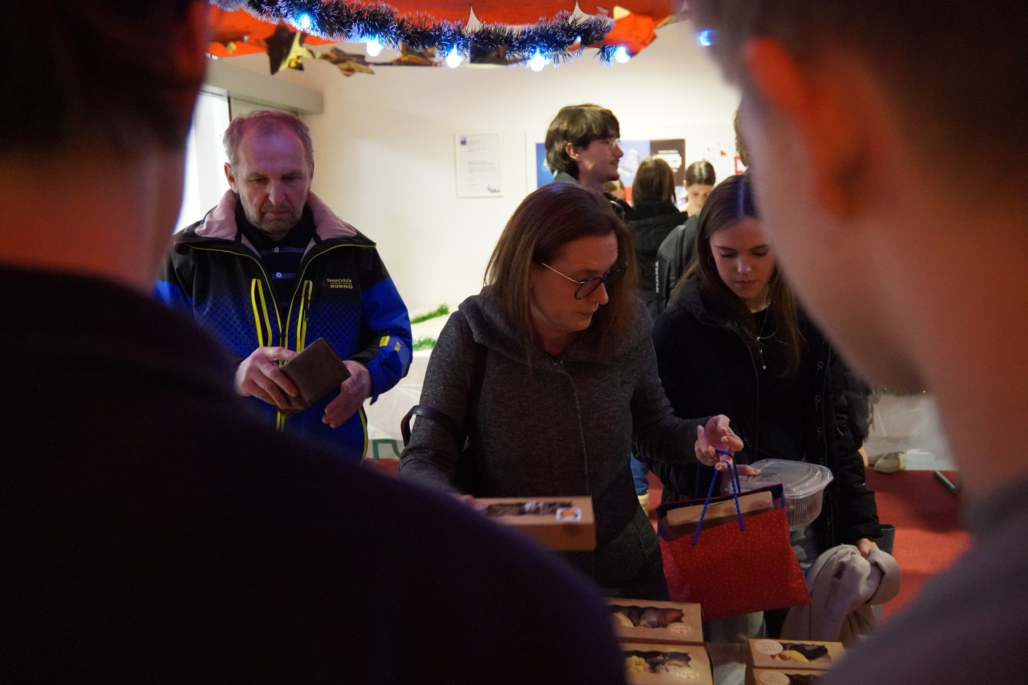 Na dan prižiga prazničnih lučk – v petek, 28. decembra – smo na Gimnaziji Škofja Loka pripravili dobrodelno prireditev Dijak dijaku s prazničnim sejmom, ki vsako leto obogati sklad Gaudeamus, namenjen pomoči dijakom, ki težko pokrijejo stroške, nastale med šolanjem. Obiskovalci so lahko izbirali med venčki, piškoti, nakitom, voščilnicami, božičnim žitom, čaji, marmelado in se posladkali s pecivom in vročo čokolado, bolj lačni pa so posegli po slastni pici. Sledil je program, kjer so se dijaki predstavili s točkami v francoščini, nemščini, ruščini, španščini, latinščini in angleščini. V kino nas je popeljala impro skupina O.sti J.arej, za glasbo pa sta poskrbela šolski orkester in šolski bend, z dvema točkama so sodelovali tudi učenci OŠ Škofja Loka – Mesto. Dijaki drugih letnikov, njihovi razredniki in mentorji so pripravili prijeten večer, ki je lep uvod v praznični december.