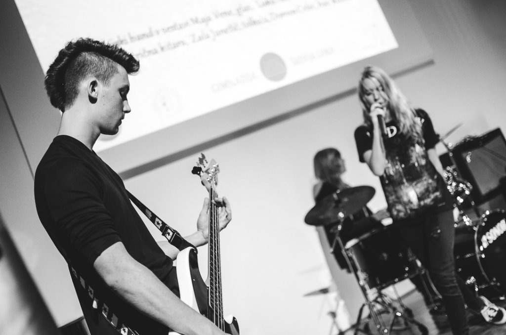 Hvala vsem nastopajočim: dijakom 2. e in 3. e za prispevke v ruskem jeziku in dijakom 4. č za nemško dramatizacijo obletnice poroke – tudi brez glasbe in filma ste bili odlični, Tadeji Rožman in Maji Podgoršek iz 2. c za avtorske pesmi v španščini. Hvala plesalki Evi Porenta iz 2. d in in njenemu soplesalcu Janu za ples ob katerem nam je zastal dih, hvala Meti Gantar iz 3. a za odličen monolog iz Fizikov, plesni skupini Locas in pesnikom Davidu Zalarju iz 3. e, Urški Košir iz 4. č in Roku Pintarju iz 2. c, hvala vsem članom pevskega zbora za pevski nastop in impro gledališču, ki nas je s svojim obiskom kina spet nasmejal. Posebno presenečenje večera pa je bil band, v katerem so prvič javno odlično muzicirali Luka N., 3. c, Maja Vene, 2. e, Zala Janežič 2. a ter Matija Veber in Domen Celec. Hvala gostom Jaku Strajnarju in njegovim Otrokom ritmov, hvala moderatorjema Gašperju Murnu in Roku Gerbcu, ki sta uspešno sestavljala kamenčke mozaika. Hvala profesorici Tini Blatnik, ki je na mozaiku s svojim odličnim glasom zastopala barve gimnazijske zbornice in vsem mentorjem učiteljem. Hvala tudi pozornim poslušalcem.