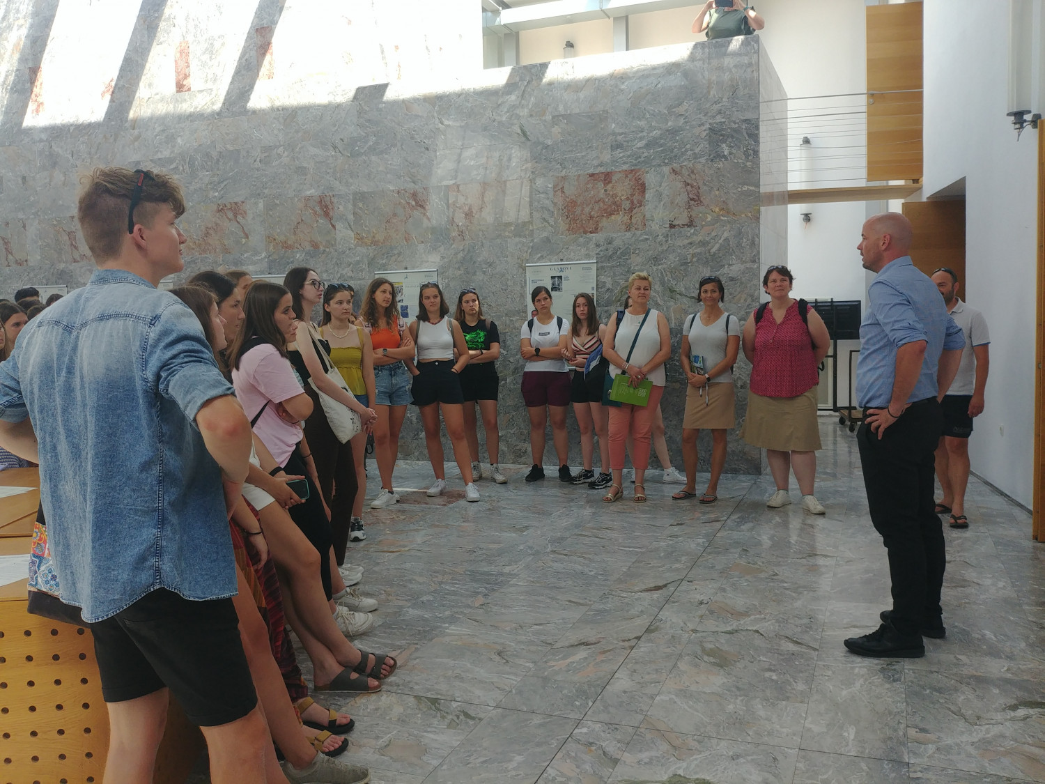 V začetku poletnih počitnic smo učenci 4. e gostili vrstnike iz štirih različnih držav – Italije, Madžarske, Romunije in Španije v okviru projekta Erasmus+. Dopoldneve smo v šoli preživljali z opravljanjem skupinskega dela na temo zdrav življenjski slog in pripravili predstavitve o dopingu v športu, pomenu vadbe za zdravje, prednostih in slabostih rekreativnega in vrhunskega športa. Pripravili in izvedli smo tudi intervju z vrhunskimi športniki, Domnom Prevcem, Lenartom Stanovnikom in Ano Bokal. Izvedeli smo veliko načinu življenja, treningih, usklajevanju športa in šole in ciljih športnikov. Prav tako smo slišali predstavitve tujih učencev o njihovih šolah in značilnostih držav, iz katerih prihajajo. Prvi dan, v ponedeljek, smo opravili orientacijo in tujce popeljali po Škofji Loki, sprehod pa zaključili na kopališču, kjer smo preživeli družabno popoldne. V torek smo delali na temo filma, Program, kjer smo posneli svoje kratke posnetke na določen izsek filma, ki govori o dopingu v športu. V sredo smo se odpravili na izlet v Planico ter se povzpeli na smučarsko skakalnico velikanko, obiskali pa smo tudi Planinski muzej v Mojstrani. S sošolci smo poskrbeli, da so učenci obiskali tudi naše glavno mesto in jih v torek popoldne peljali v Ljubljano, v četrtek popoldne pa smo se družili še na Bledu. V četrtek smo v šoli predstavili vse izdelke, ki so nastali ob naših delavnicah na temo dopinga v športu, rekreativnega in vrhunskega športa. Teden smo zaključili z izletom v Piran, kjer smo ob morju, aktivno s plavanjem, preživeli še zadnje skupne trenutke, nato pa se v soboto zjutraj od vrstnikov poslovili. Za vse je bila ta izmenjava nepozabna izkušnja, na kateri smo preizkusili svoje zmožnosti komunikacije v tujem jeziku, pridobivali znanje na že omenjeno temo izmenjave in sklenili nova prijateljstva.