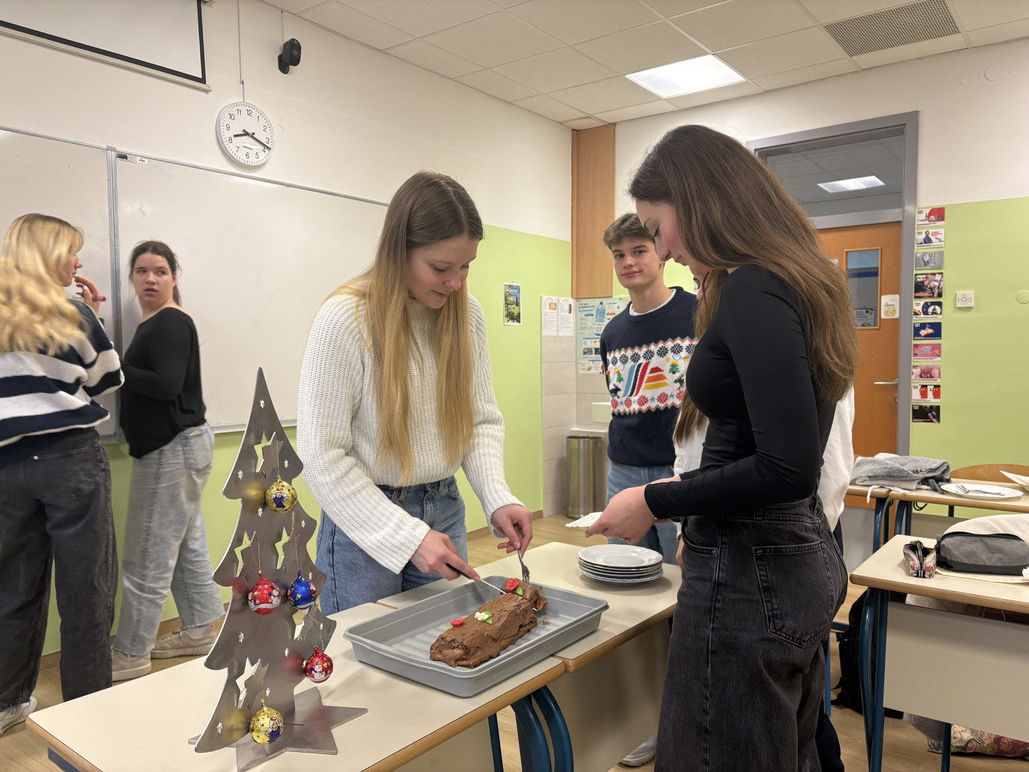 Na eni od slik pa lahko vidite tudi »bûche de NOËL« (čokoladno božično rulado v obliki debla), ki so jo naši dijaki po francoskem receptu naredili sami. »Félicitations«!