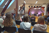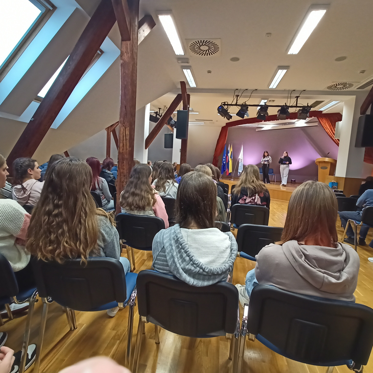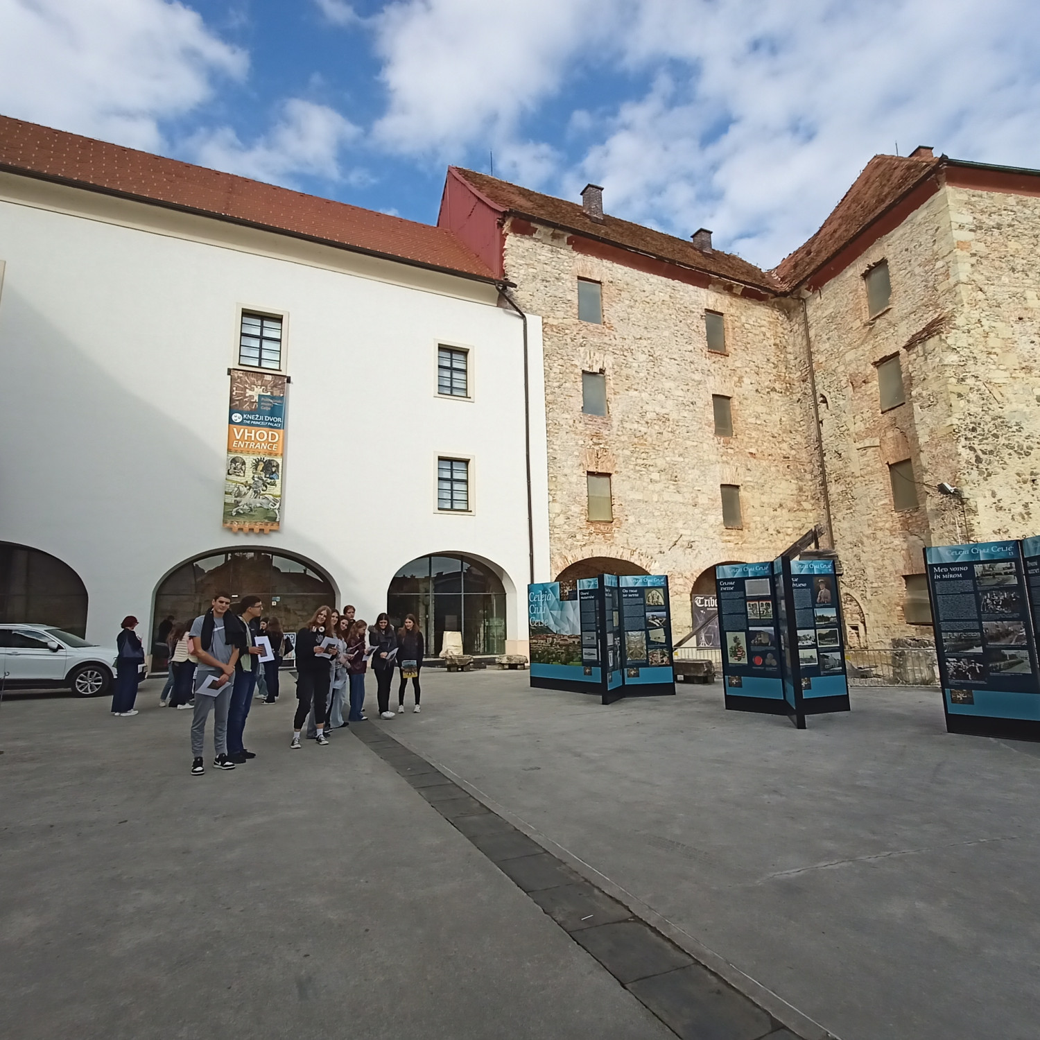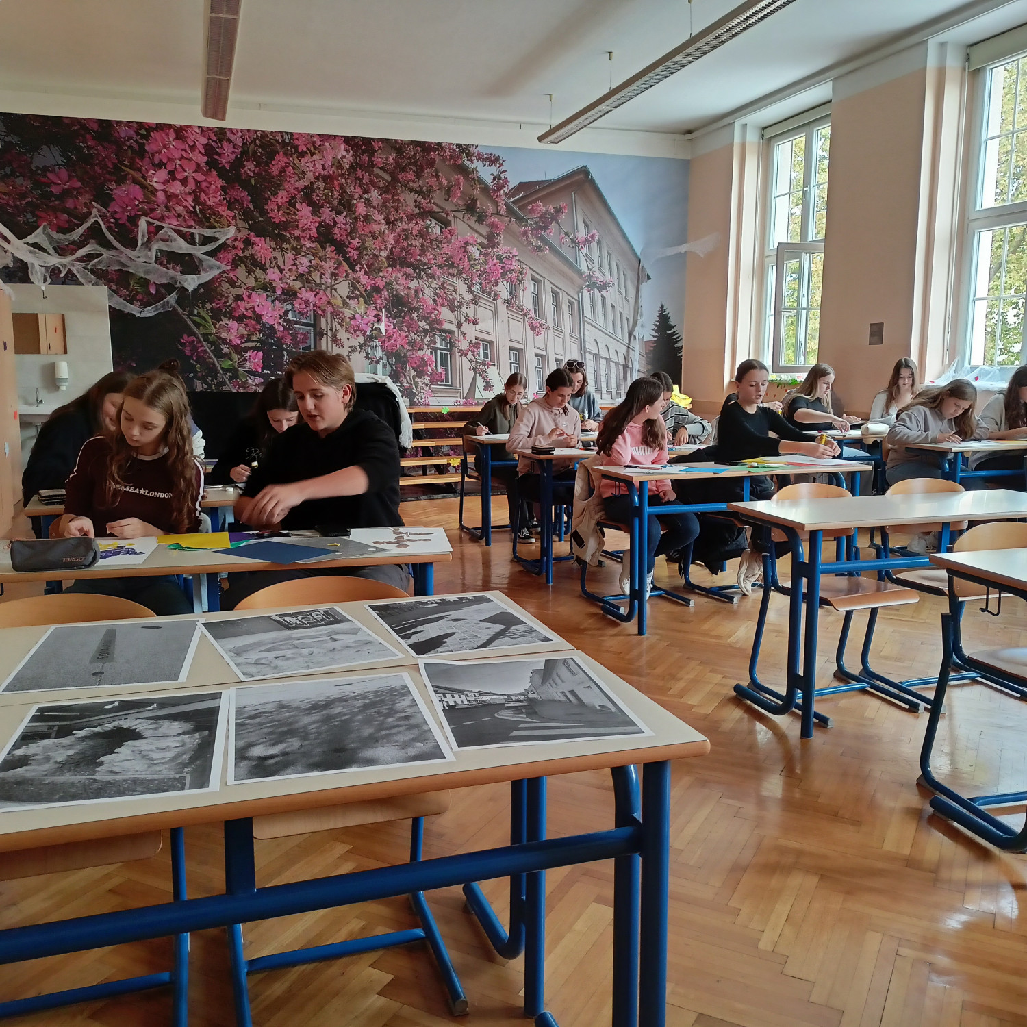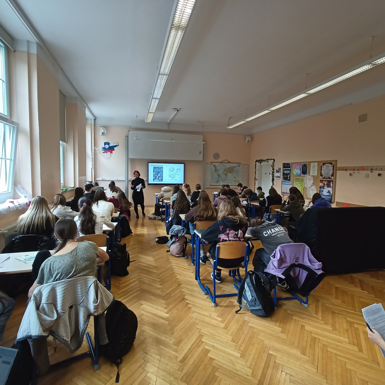 V četrtek, 16. 10., so se dijaki Gimnazije Škofja Loka že tradicionalno udeležili nacionalne izmenjave s I. gimnazijo v Celju, ki poteka med oddelkoma prvih letnikov klasične gimnazije. Njihovi vrstniki Celjani so za naše dijake za dobrodošlico pripravili pester program s kratko prireditvijo, na kateri so se predstavili mladi talenti z različnimi kulturnimi točkami, in slastne kulinarične dobrote, da smo se tako okrepčali pred raziskovanjem mesta, ki nas je gostilo. Spoznali smo Celje, kot ga poznamo danes, in “mesto pod mestom” v obliki razstave, ki prikazuje rimsko Celejo “in situ” (“na samem mestu”). Zanimivo se nam je zdelo, da je zaenkrat raziskanega le približno 10 odstotkov antičnega Celja, pa tudi, od kod rek “vse poti vodijo v Rim”. Po kosilu so dijaki ustvarjali po navdihu antičnih mozaikov, ki so v preteklosti krasili razkošnejše vile. Motive le-teh so vključili v kolaž skupaj s fotografijami, ki so jih naredili v času raziskovanja mesta. Izdelke so razstavili in se nato z gostitelji odpravili domov. Drugi dan izmenjave, 17. 10., so dijaki izvedeli več o gradnji antičnih mest in o stavbah antične Celeje, nato pa so se podali v Šempeter na ogled nekropole. Ob povratku v Celje so se sprehodili na Miklavški hrib in si ogledali ostanke Heraklejevega svetišča. “Se vidimo” pa velja do marca 2026, ko se že veselimo obiska Celjanov v naši gimnaziji. |