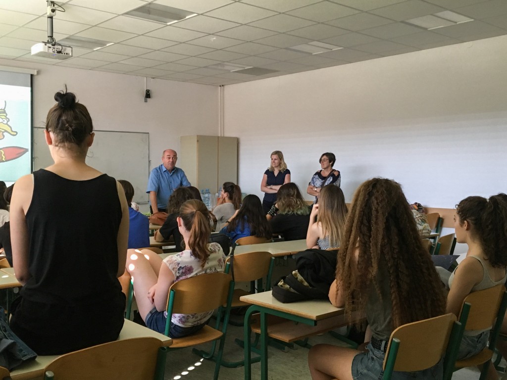 Ko se je šolsko leto bližalo koncu, je prišel čas, da tudi Slovenci pokažemo Špancem svojo gostoljubnost. V tednu od 17. do 24. junija nas je 16 španskih dijakov počastilo s svojim obiskom. Slovenski dijaki so Špancem pripravili vodeni sprehod po Škofji Loki in degustacijo slovenskih slaščic. Skupaj so sodelovali v delavnici peke loških kruhkov, se preizkusili v tkanju na Loškem gradu, primerjali so slovenske in španske navade med velikonočnim tednom ter ozaveščali pomen nesnovne kulturne dediščine obeh držav. Svojo ustvarjalnost so pokazali tudi z gledališko igro; skupina dijakov je namreč odlično odigrala prizor iz Škofjeloškega pasijona v španščini. Poleg tega so si španski dijaki ogledali slovensko prestolnico in Bled, se sprehodili po Vintgarju in okrog Blejskega jezera ter se osvežili v jezeru. Seznanili so se tudi s kraškimi značilnostmi, saj so obiskali Postojnsko jamo, občudovali so primorsko arhitekturo v Piranu in uživali v svežini Jadranskega morja.