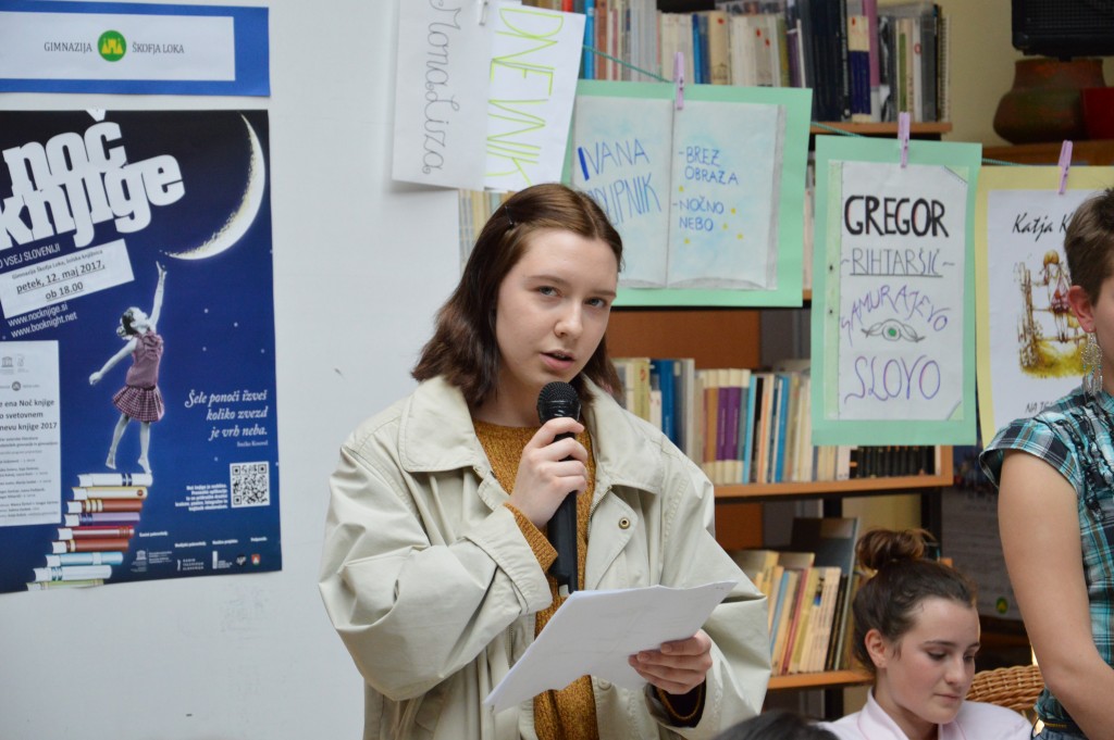 V petek, 12. maja 2017, smo na šoli ponovno pripravili literarni večer z avtorskimi prispevki naših dijakinj in dijakov. S prireditvijo smo se vključili v bogato mednarodno dogajanje, ki že več let poteka kot Unescova Noč knjige ob svetovnem dnevu knjige (23. april), pri nas pod častnim pokroviteljstvom Slovenske nacionalne komisije za Unesco.