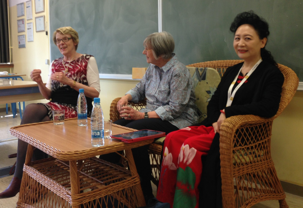 Pred prvomajskimi počitnicami so dijaki 3. a in 3. e pod mentorstvom mag. Nataše Zaplotnik gostili tri pisateljice članice PEN kluba: kitajsko pisteljico Sheng Xue, dr. Regulo Venske iz Nemčije ter Sarah Lawson iz Anglije. V pogovoru so dijakom predstavile poklic pisateljice, načine pisanja, povedale so, kako izbirajo tematiko in obliko svojih umetniških del, kako se soočajo z literarno kritiko in cenzuro. Ura in pol izredno zanimivega pogovora z eminentnimi gostjami je bil za dijake poučen, v marsičem jih je tudi presenetil in jim odprl nova obzorja v razumevanju družbene stvarnosti in umetniškega pogleda nanjo.