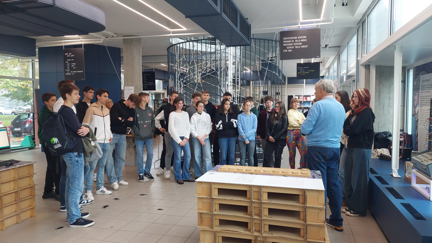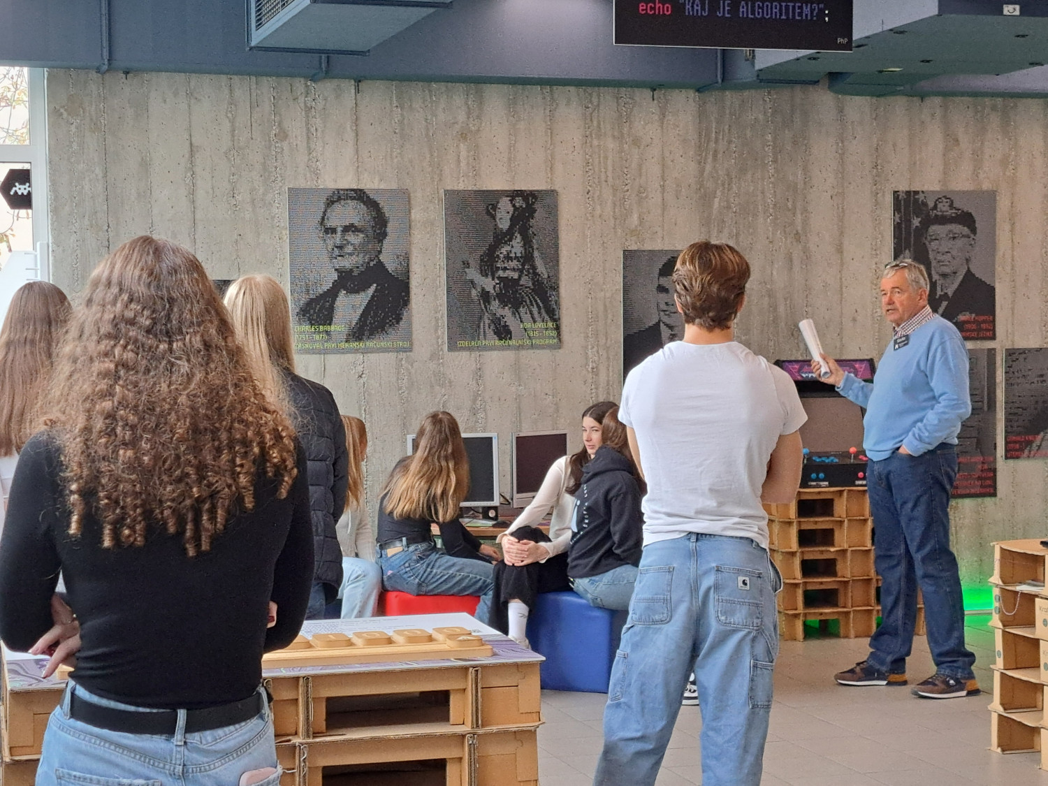 Glede na smernice projekta KATARINA (vsaK nAj bo deležen Temeljnih znAnj Računalništva In iNformAtike), ki poteka na šoli tretje leto, smo za inovativna oddelka 2. letnika, 2. a in 2. č, organizirali obisk Računalniškega muzeja. Svoje vtise sta zapisali dijakinji Maja Miklavčič in Urška Rovtar, 2. a. Pred jesenskimi počitnicami, v četrtek, 23. 10. 2025, smo se odpravili v Ljubljano na obisk Računalniškega muzeja. Tam smo imeli dve dejavnosti. Najprej smo si ogledali razstavo starih računalnikov, vodič nam je povedal marsikaj zanimivega o njihovem razvoju na Slovenskem. Na razstavi so bile tudi slike znanih izumiteljev, ki so pripomogli k razvoju računalništva. Slike so bile zanimive, zelo računalniške, sestavljene iz kvadratkov s šumniki. Kasneje nas je čakala še praktična delavnica z naslovom Programer/ka, poklic prihodnosti, na kateri smo programirali z microbitom. Pošiljali smo si sporočila in znake, lahko smo spreminjali tudi zvok. Lahko bi programirali še naprej, vendar se je čas iztekel. Izvedeli smo veliko novega in se ob tem še zabavali. Alenka Kolenc Krajnik, prof., koordinatorica projekta |