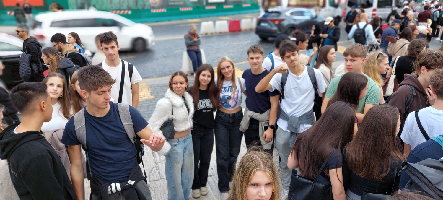 Pot: Škofja Loka–Rim–Vezuv–Pompeji–Škofja Loka Kdo: dijaki 2. bc in 3. bc z razredničarkama Matejo Prevodnik Mayland in Sonjo Gartner ter profesorjema Anico Šaljaj in Gašperjem Kvartičem. Ta posadka se je odpravila na strokovno ekskurzijo, ki je v prvi vrsti namenjena dijakom klasičnega programa, da si bolje naslikajo življenje in umetnost antičnega in srednjeveškega Rima. 1. dan: Po nočni vožnji začnemo v srcu Rima – Vatikanu. Ogledamo si baziliko Sv. Petra, sledijo pa glavne znamenitosti: baročni trg Navona z vodnjakom štirih rek, vodnjak Trevi in Španske stopnice s cerkvijo Trinita dei Monti. 2. dan: Spustimo se v Kalistove katakombe, kjer se seznanimo z življenjem prvih kristjanov, ob vrnitvi v center Rima se sprehodimo po cesarskem forumu in seveda vstopimo v Kolosej. Poiščemo vsak svojo različico italijanskih dobrot – pica, pasta, gelato, tiramisu? Vse! 3. dan: Hotelska restavracija v Cassinu nas z obilnim zajtrkom ustrezno podpre za pot proti Neaplju. Med vznožja nas Vezuv pozdravi “s kapo na glavi”, pa se kaj kmalu vljudno odkrije in se nam predstavi v vsej svoji globini in širini. Z vrha kraterja lahko občudujemo neapeljski zaliv z otoki, nakar se po vratolomni vožnji spustimo do Pompejev. Odlična vodiča nas popeljeta v svet pred izbruhom vulkana leta 79 in ogled zaključimo ob slikovitem sončnem zahodu. Zavrnemo predlog dijakov, da bi ekskurzijo podaljšali za en dan, nočno vožnjo proti domu večinoma prespimo in s ponedeljkovim jutrom začnemo počitniški teden. Mateja Prevodnik Mayland, prof. |