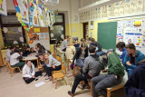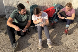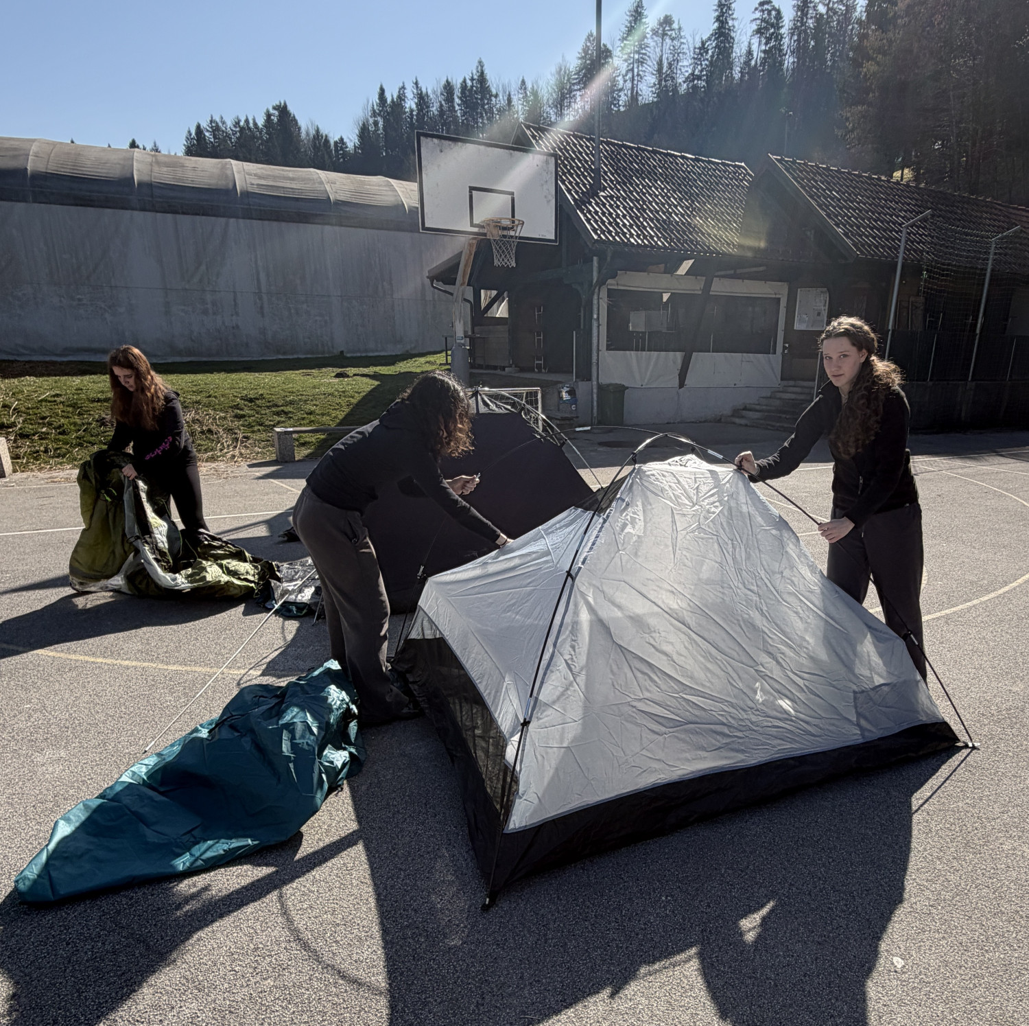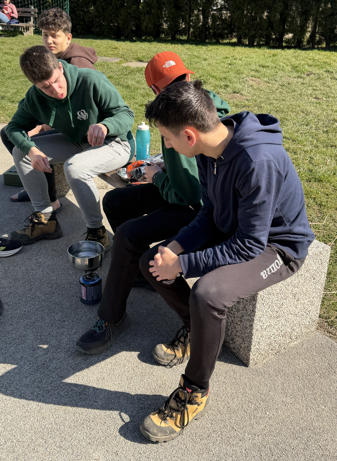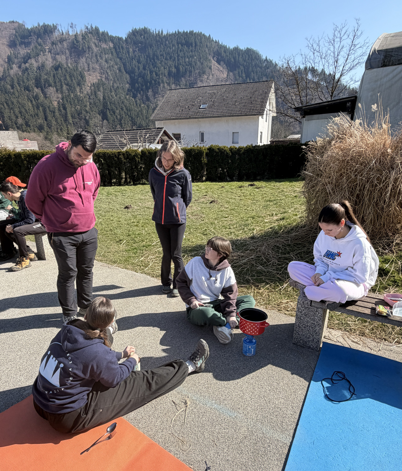 Pred kosilom so dijaki na igrišču za šolo postavili tudi šotore. Nekateri so jih postavili hitro in brez zapletov, drugi so ob tem hitro ugotovili, da je postavljanje šotora lahko težavno opravilo. Prav takšne izkušnje pa so pomemben del priprav na odpravo. Sledila je še priprava kosila na gorilnikih. Dijaki so preizkusili, kako poteka kuhanje na odpravi, obenem pa smo pregledali tudi del njihove opreme in se pogovorili o tem, kaj se je izkazalo za dobro izbiro ter kaj bi bilo smiselno še izboljšati.
