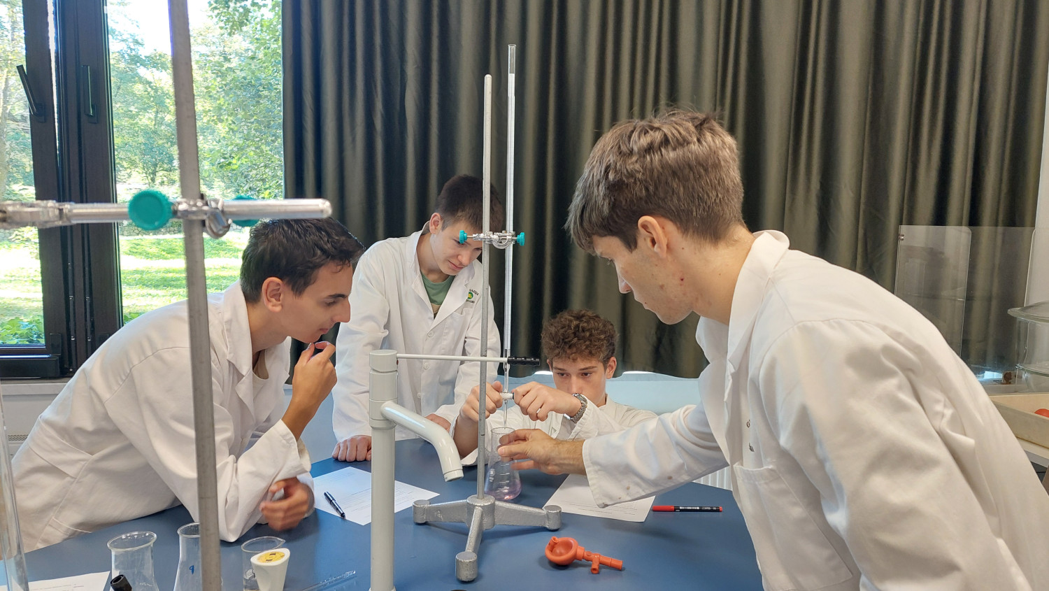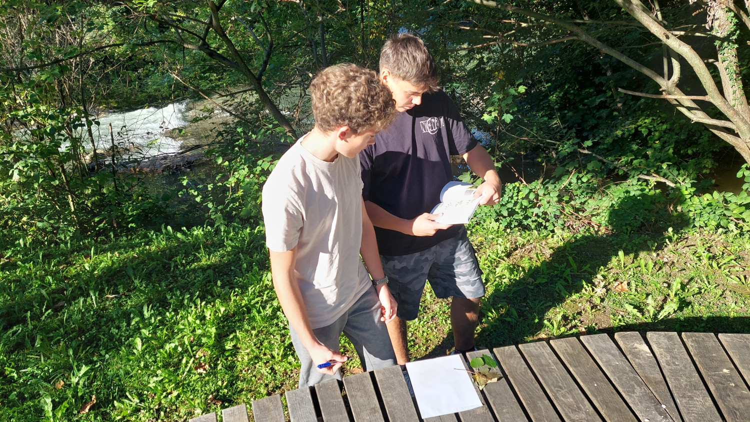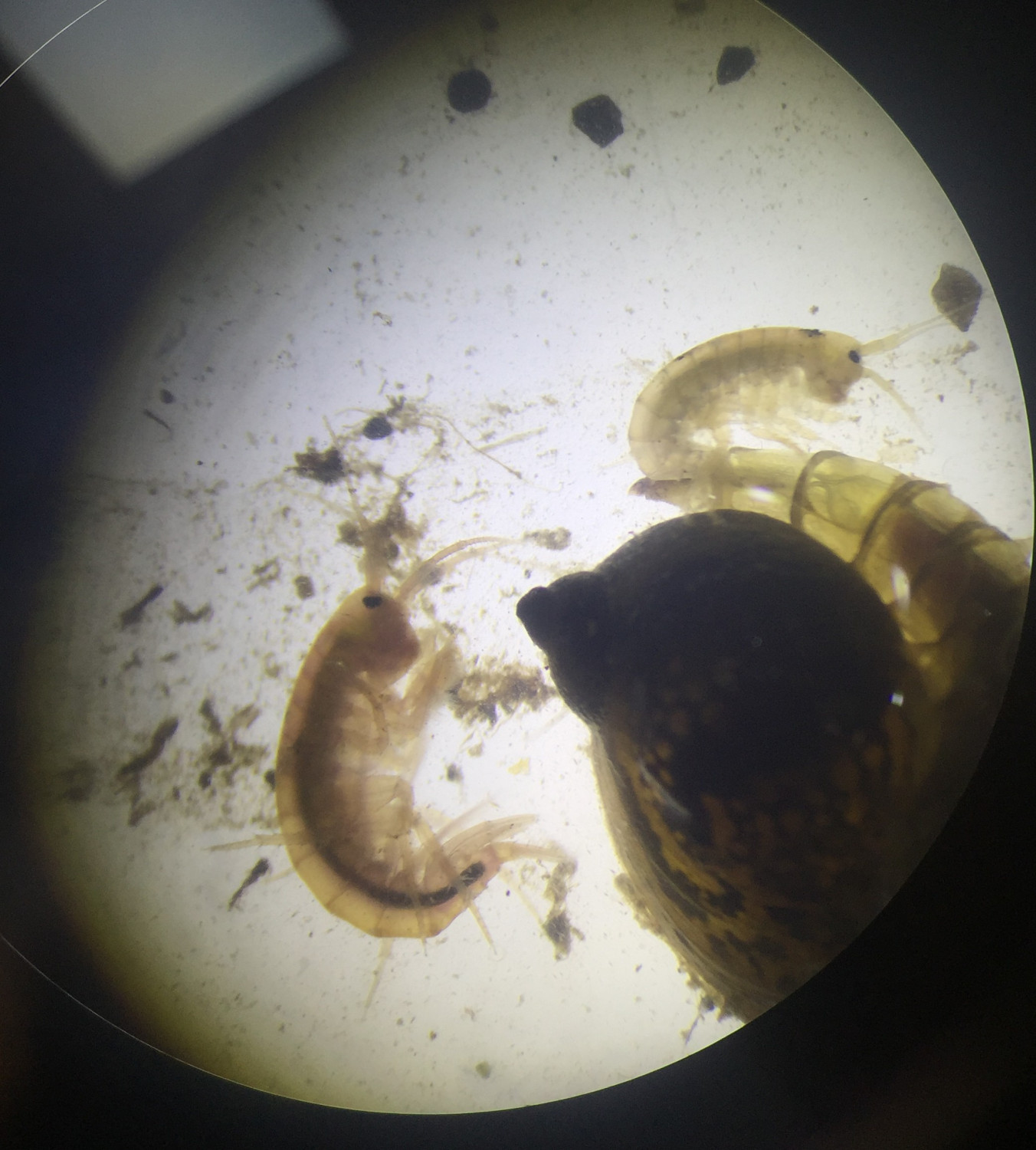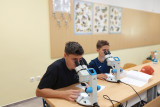 Po malici smo se s prvo skupino zbrali v biološki učilnici, kjer smo z lupami in s pomočjo naše profesorice pregledali ter določili vrste malih živali. To so bili organizmi, ki jih mnogi izmed nas še nikoli nismo videli ali slišali zanje. Druga skupina je med tem v okviru kemijskih analiz s postopkom titracije v našem šolskem laboratoriju preučila sestavo vode. Skupini sta se nato zamenjali.